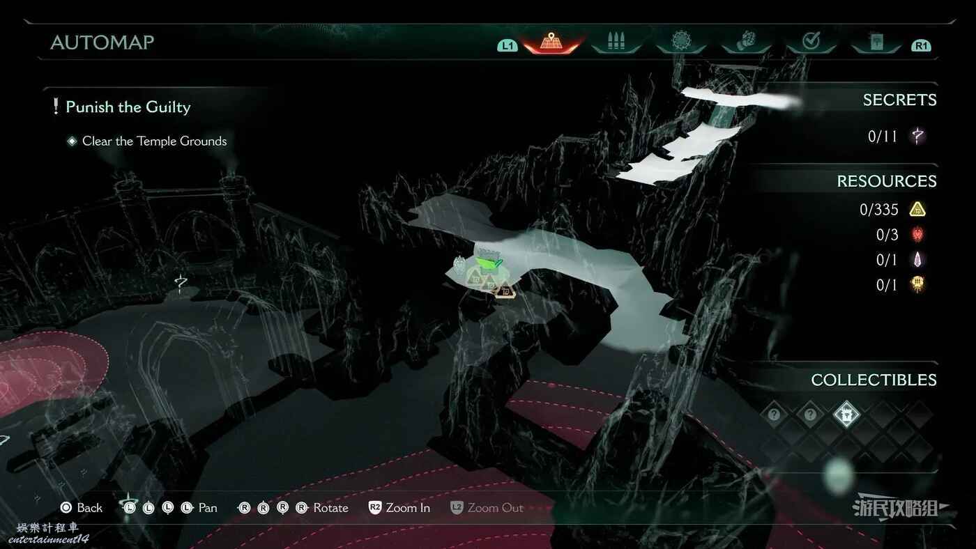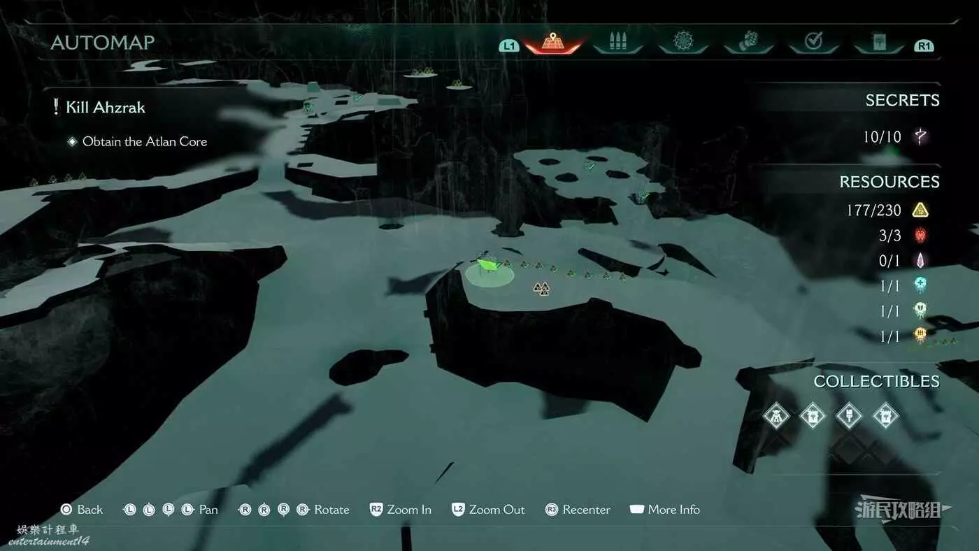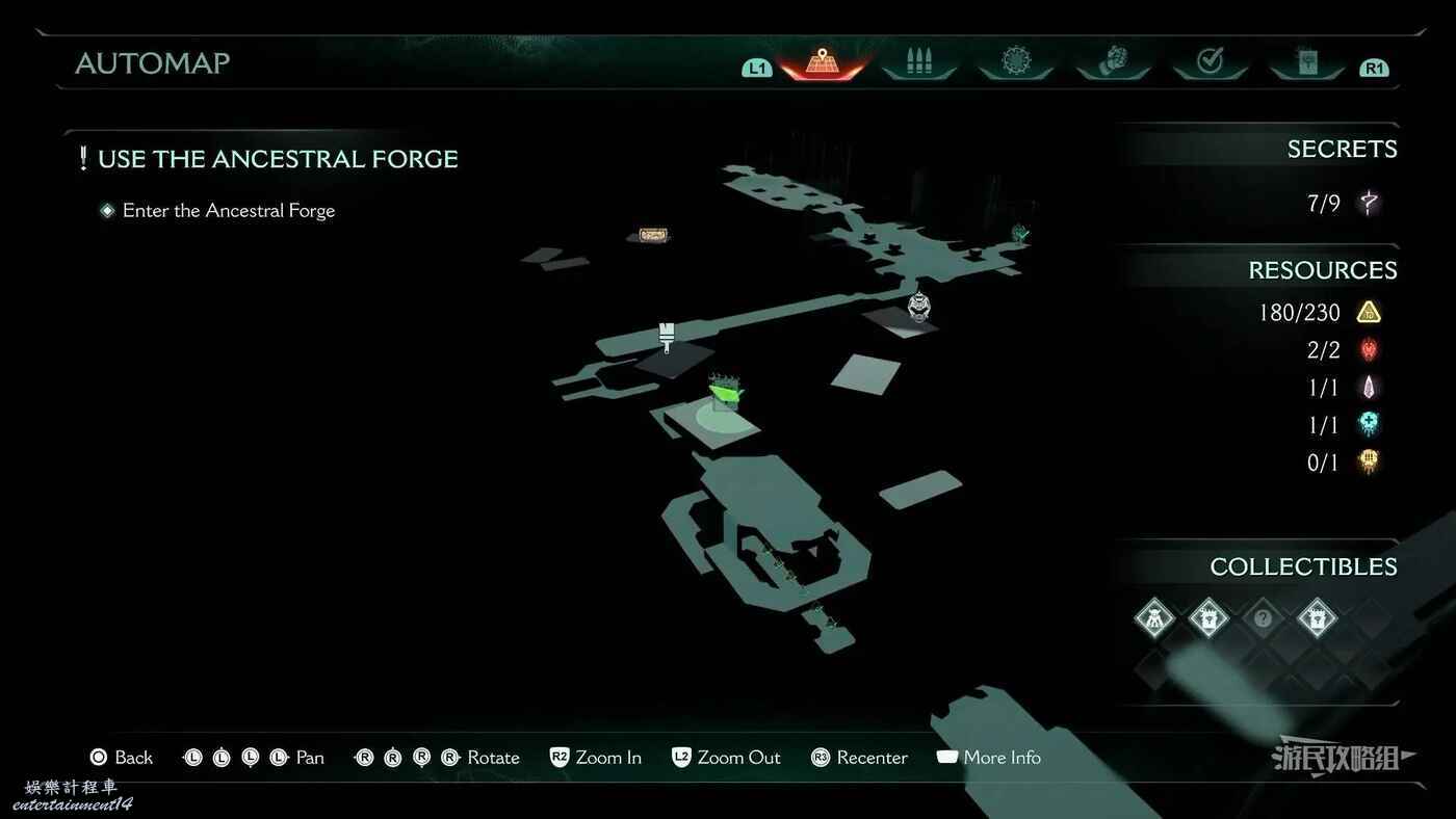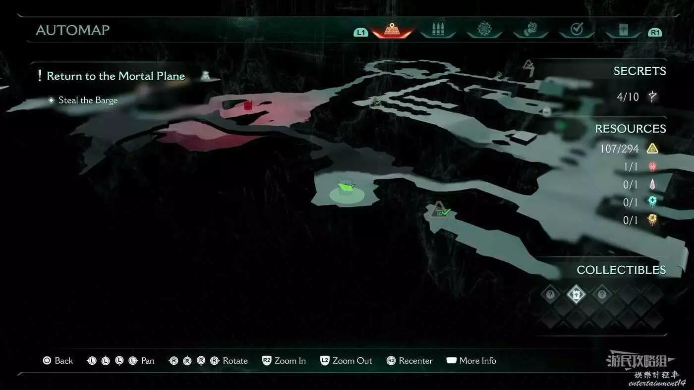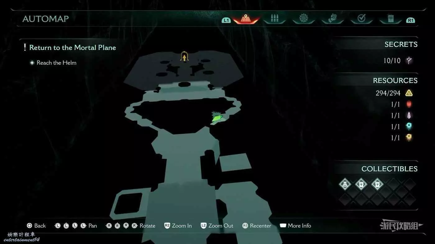 在第14章前期需要降低水位線才能與靜態發射器互動的區域,完成進入巢穴觸發的戰鬥後,沿著與標記相反的方嚮往下走一個斜坡,右側柱子上有個綠色盾牌雕像,從這裡往下跳就能看到這個百科。