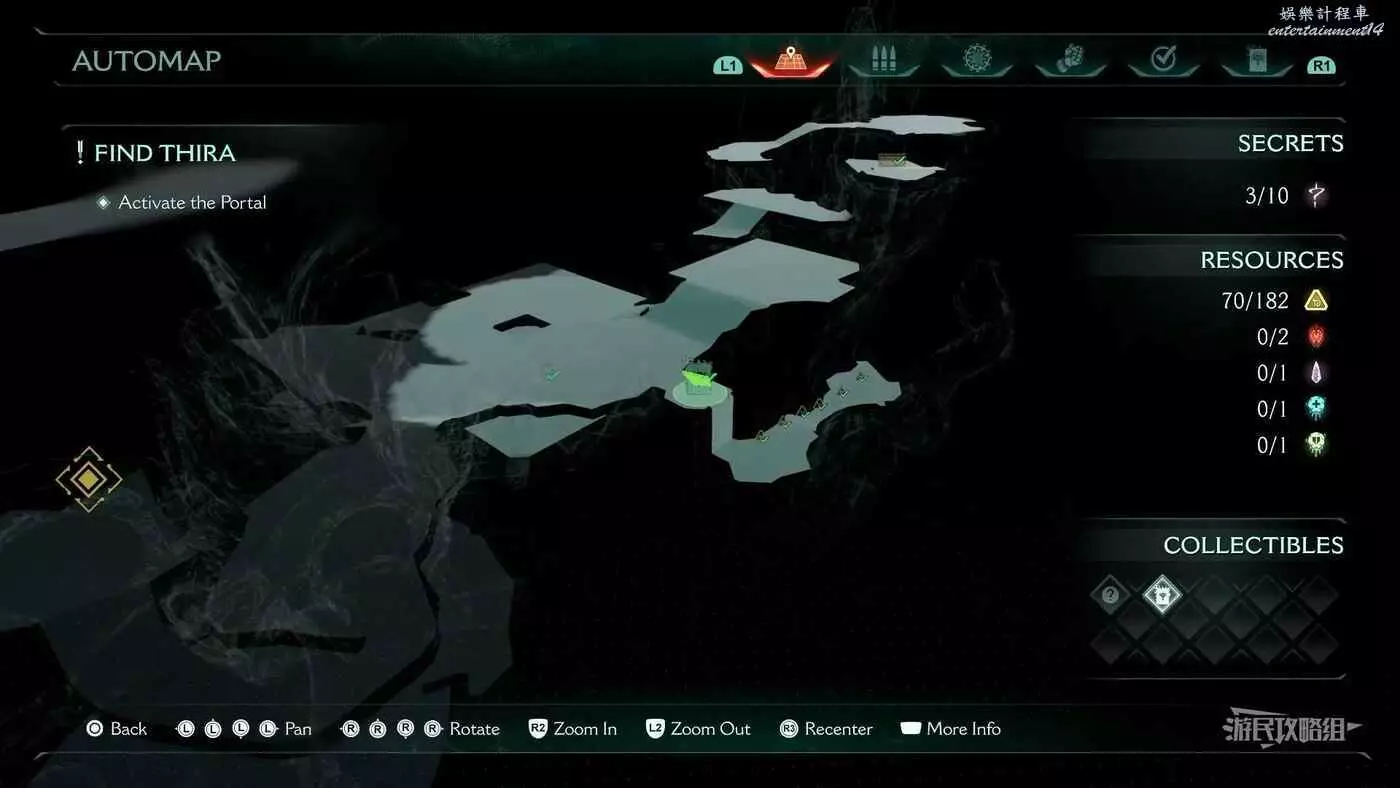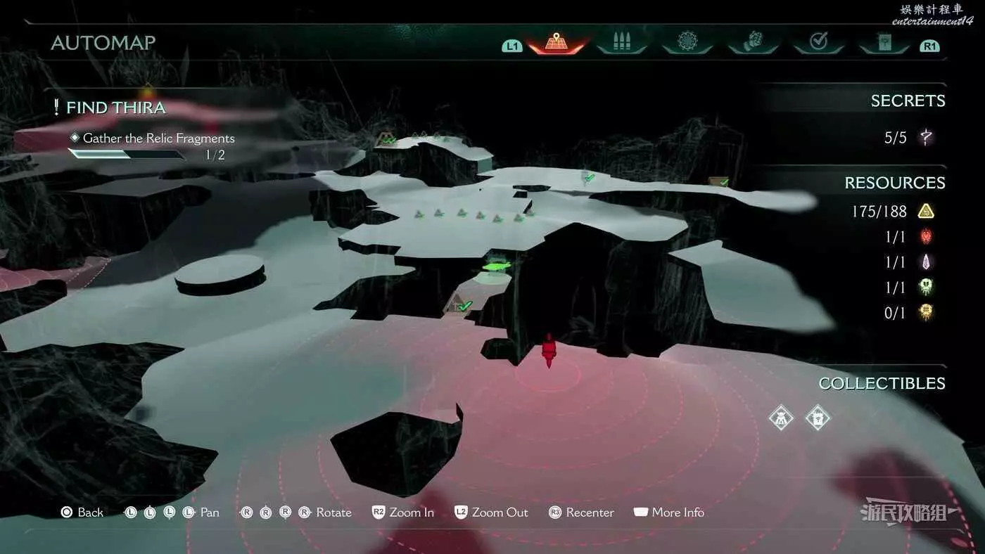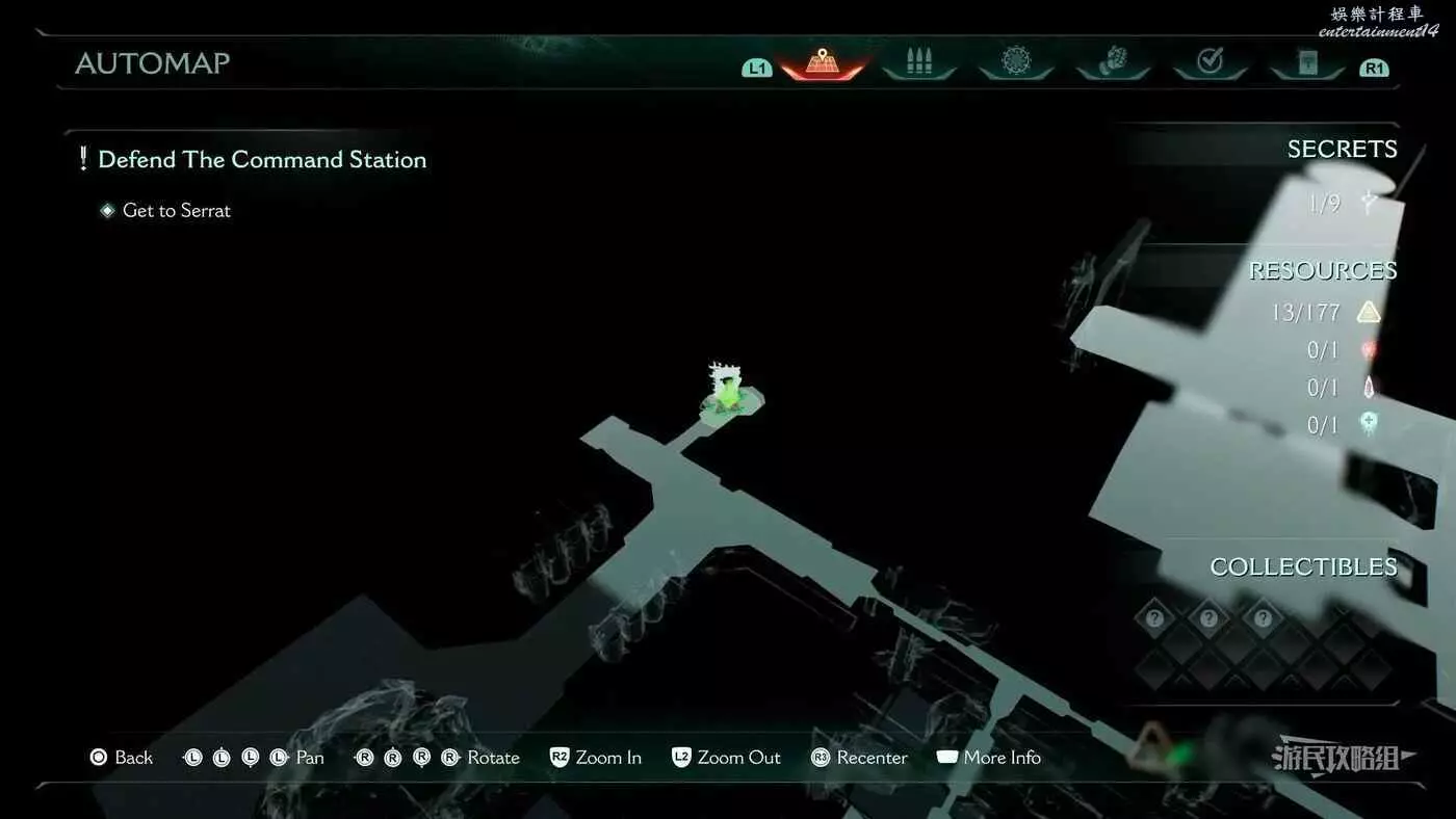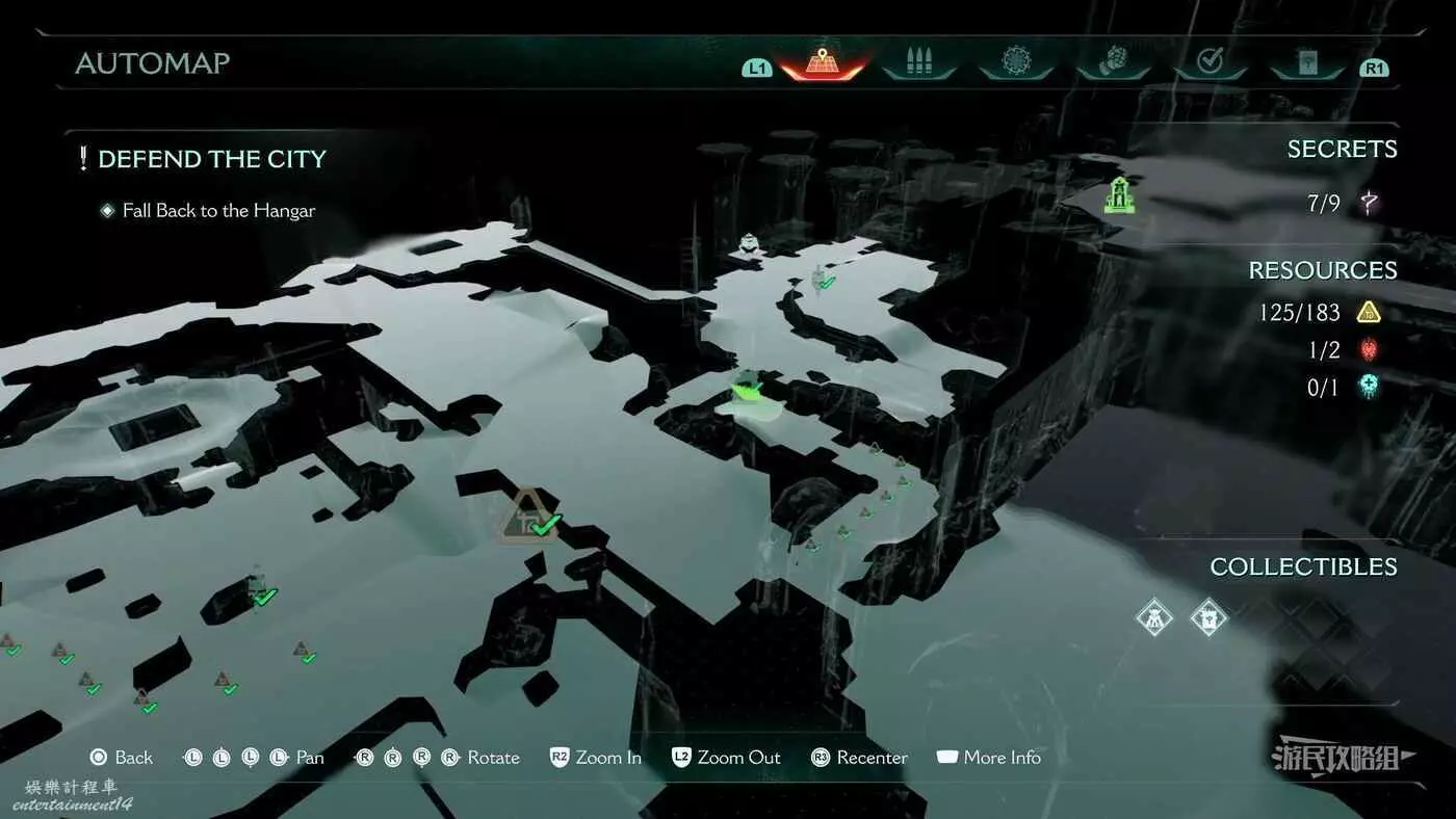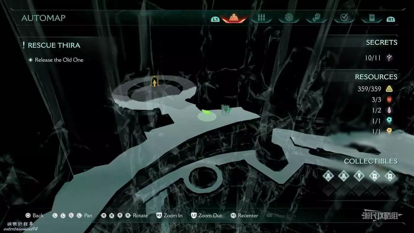 在第14章前期需要降低水位線才能與靜態發射器互動的區域,完成進入巢穴觸發的戰鬥後,沿著與標記相反的方嚮往下走一個斜坡,右側柱子上有個綠色盾牌雕像,從這裡往下跳就能看到這個百科。