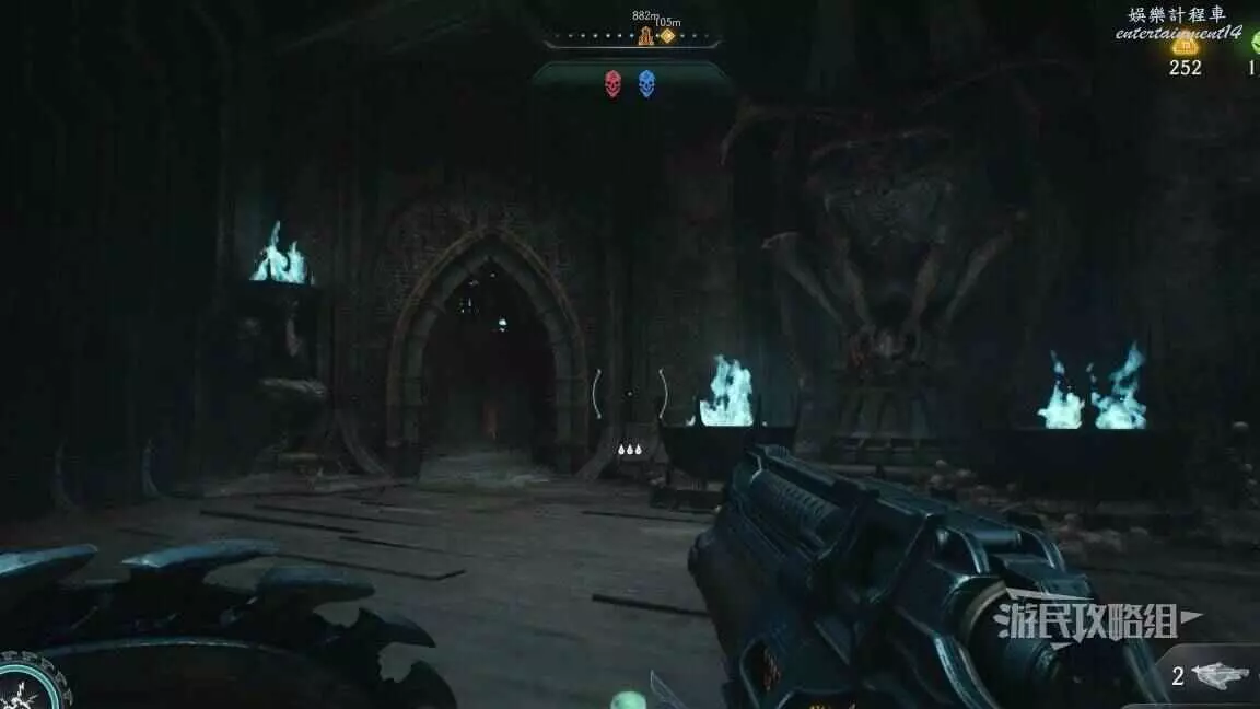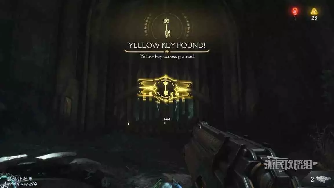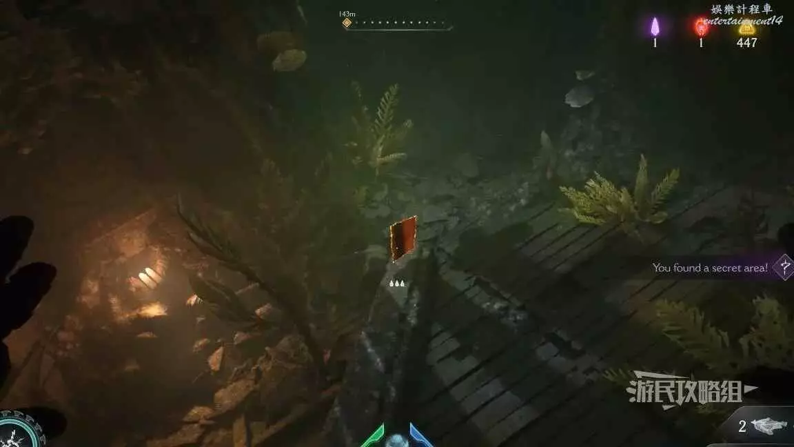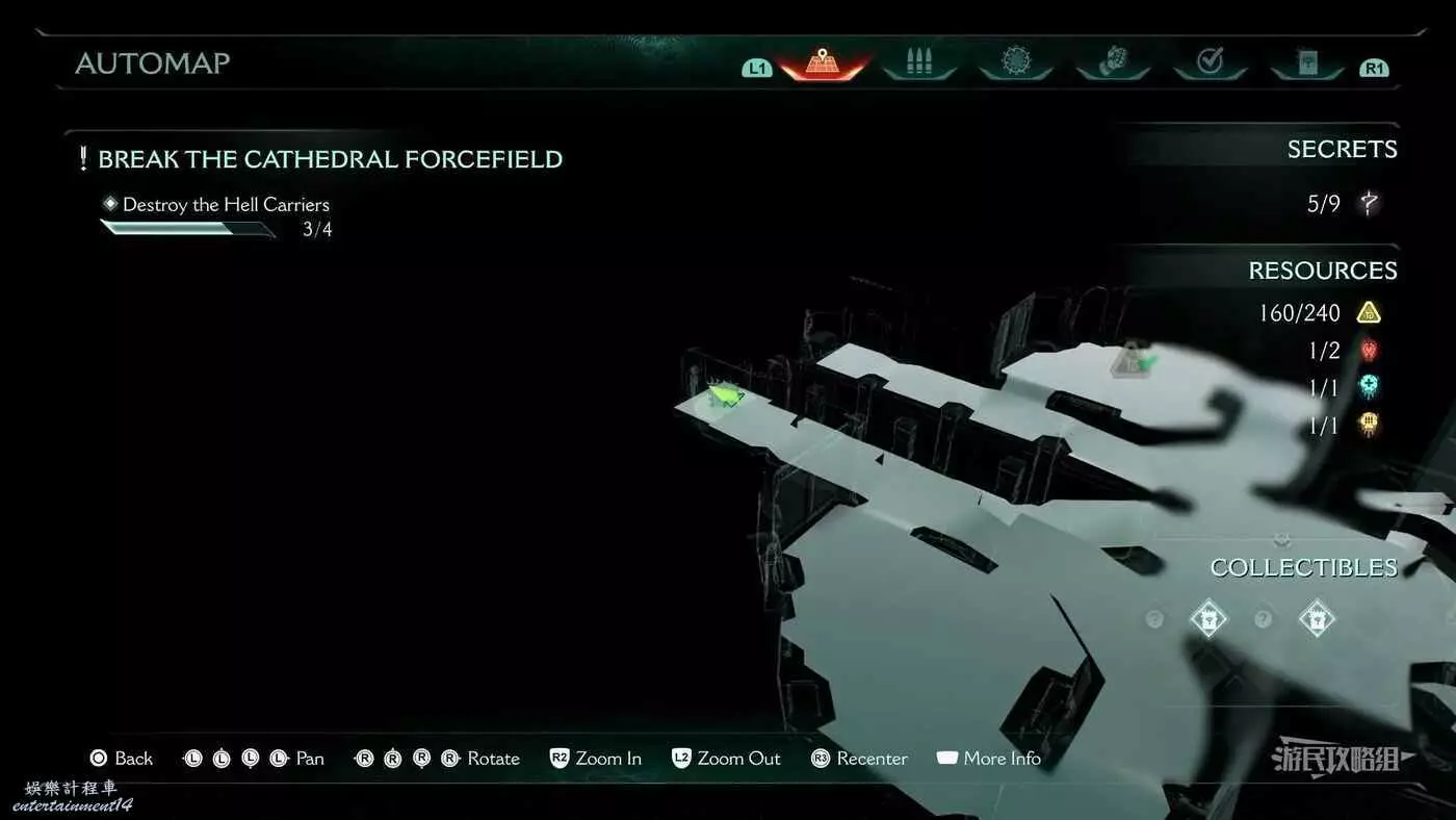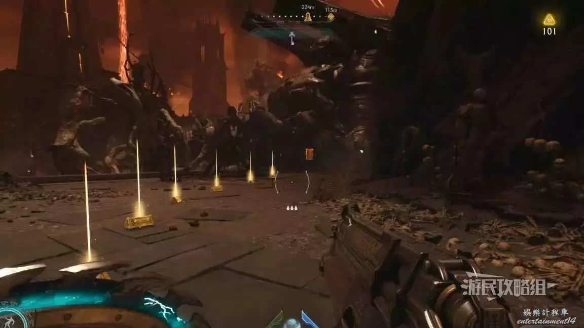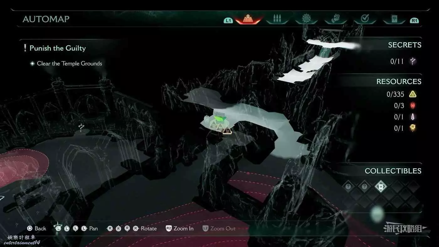 在整個關卡地圖邊緣距離淺水區不遠處的地方有一個哨兵聖壇,從聖壇繼續往地圖邊緣走可以看到一面可攀爬的牆,爬到上層即可看到黃金和這個百科,附近還有一個惡魔玩具。