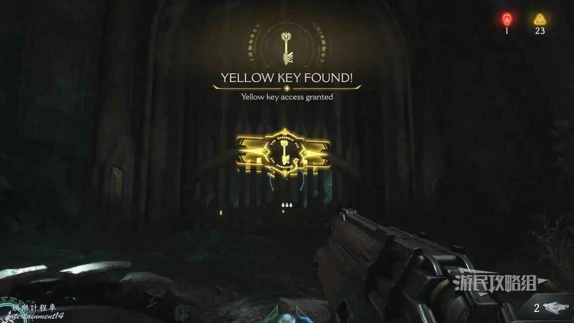在地圖左側的攻城塔一路沿著黃金爬上左側山坡,在頂部可以看到黃色鑰匙,從黃色鑰匙後方台階往下跳,可以在右側看到一扇鑰匙門,此百科就在門後。