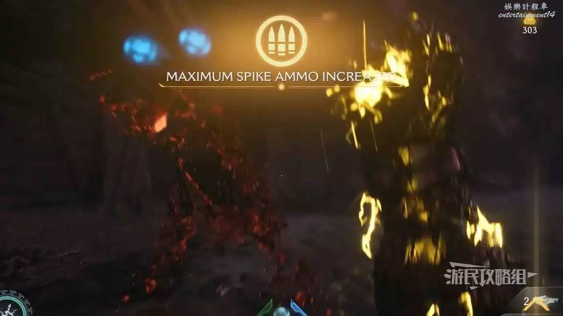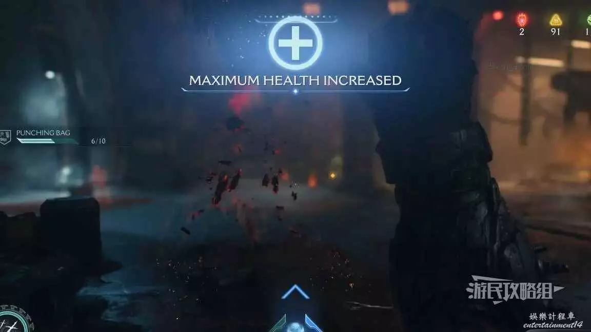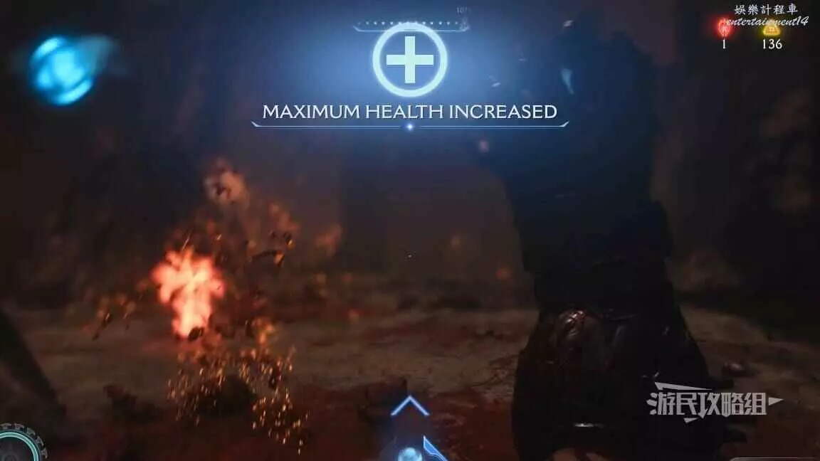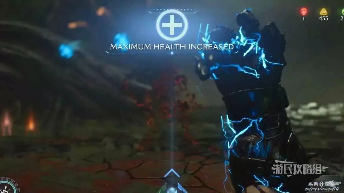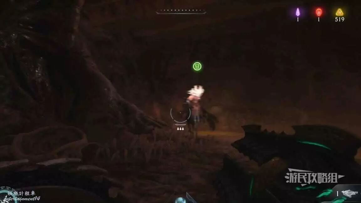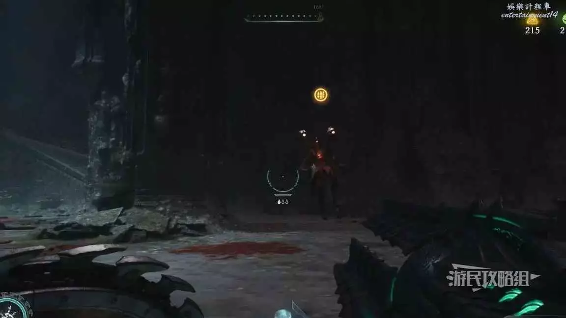 返回本章最初的開闊區域時會降落在一個標有遭遇戰的平台上,使用盾牌穿過縫隙缺口,然後爬上右側牆壁,先不要穿過左側的門,直走並王邊緣看可以看到下方的黃金,跟隨黃金穿過使用盾牌的位置,即可到達一個觸發遭遇戰的平台,擊敗出現的首領即可獲得惡魔精華。