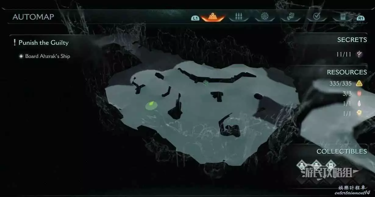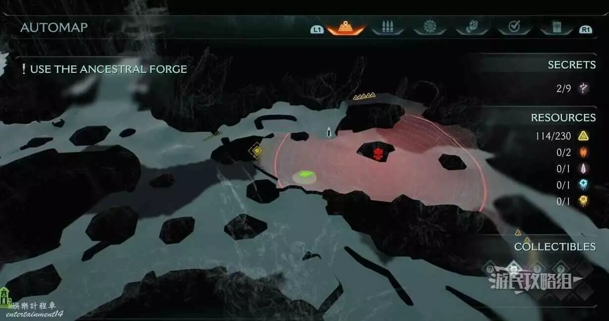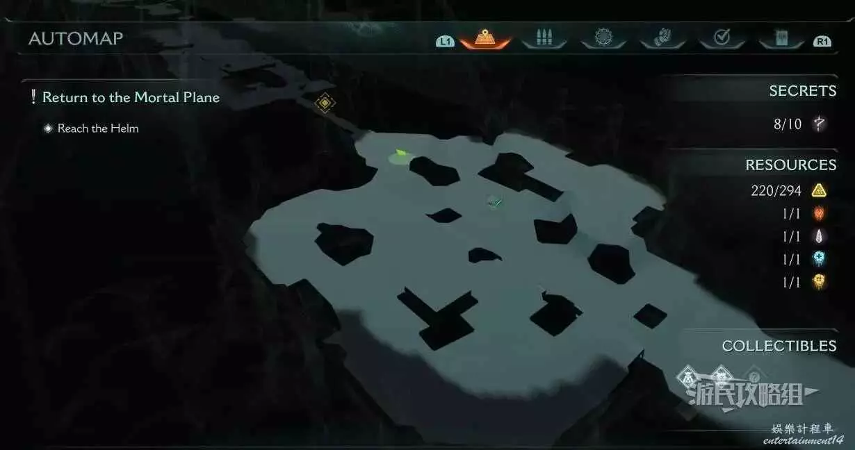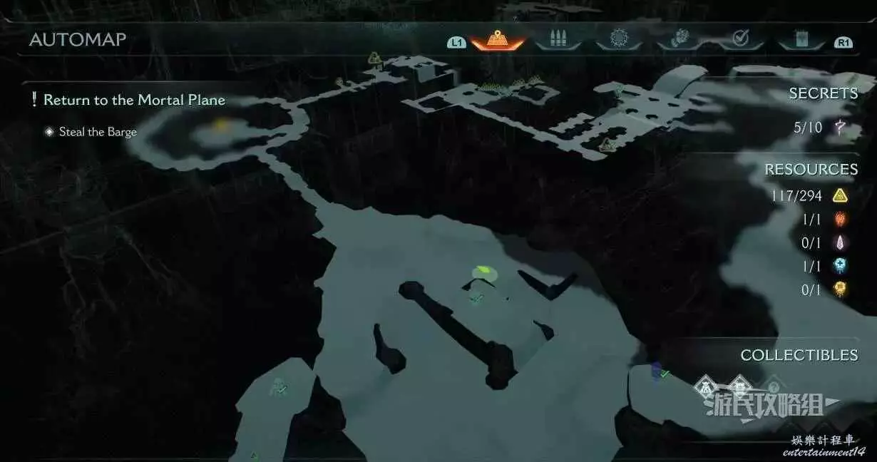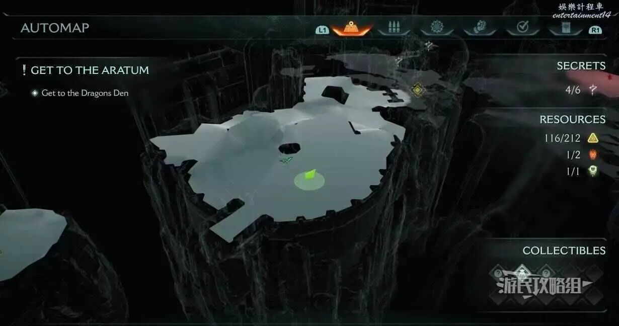 返回本章最初的開闊區域時會降落在一個標有遭遇戰的平台上,使用盾牌穿過縫隙缺口,然後爬上右側牆壁,先不要穿過左側的門,直走並王邊緣看可以看到下方的黃金,跟隨黃金穿過使用盾牌的位置,即可到達一個觸發遭遇戰的平台,擊敗出現的首領即可獲得惡魔精華。
