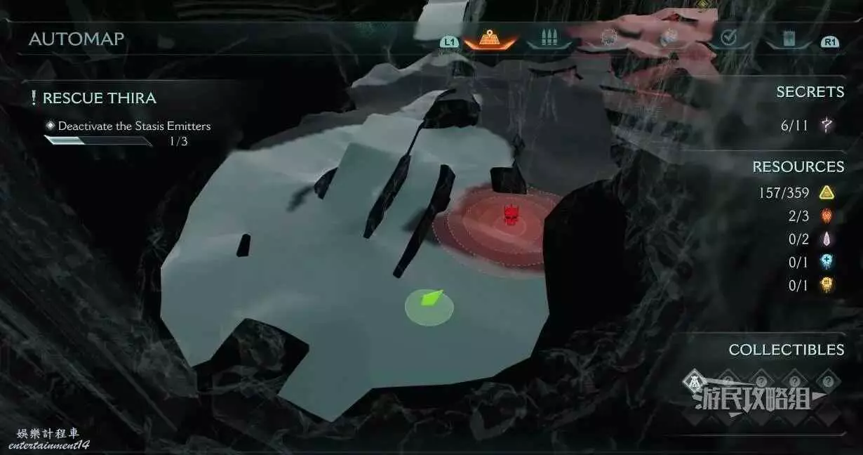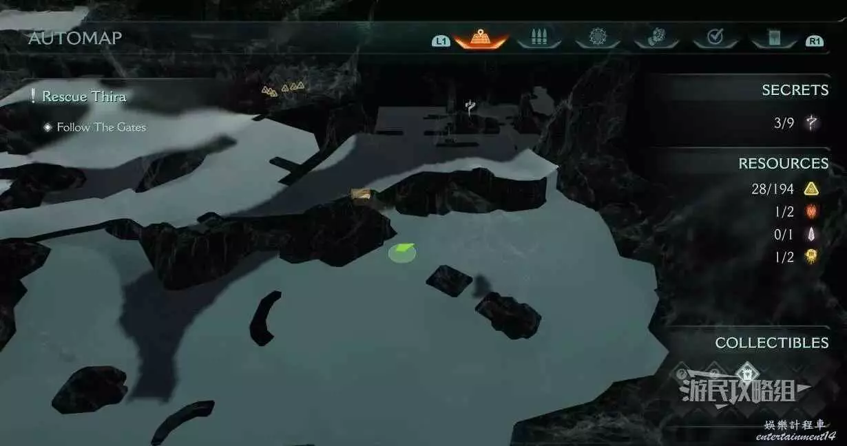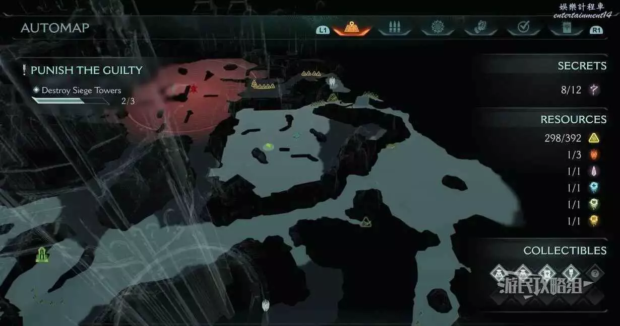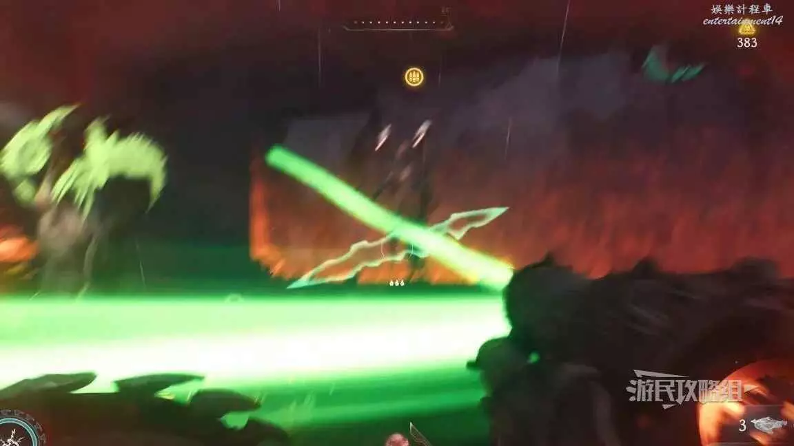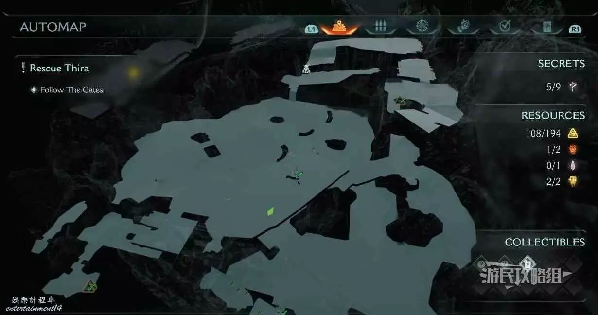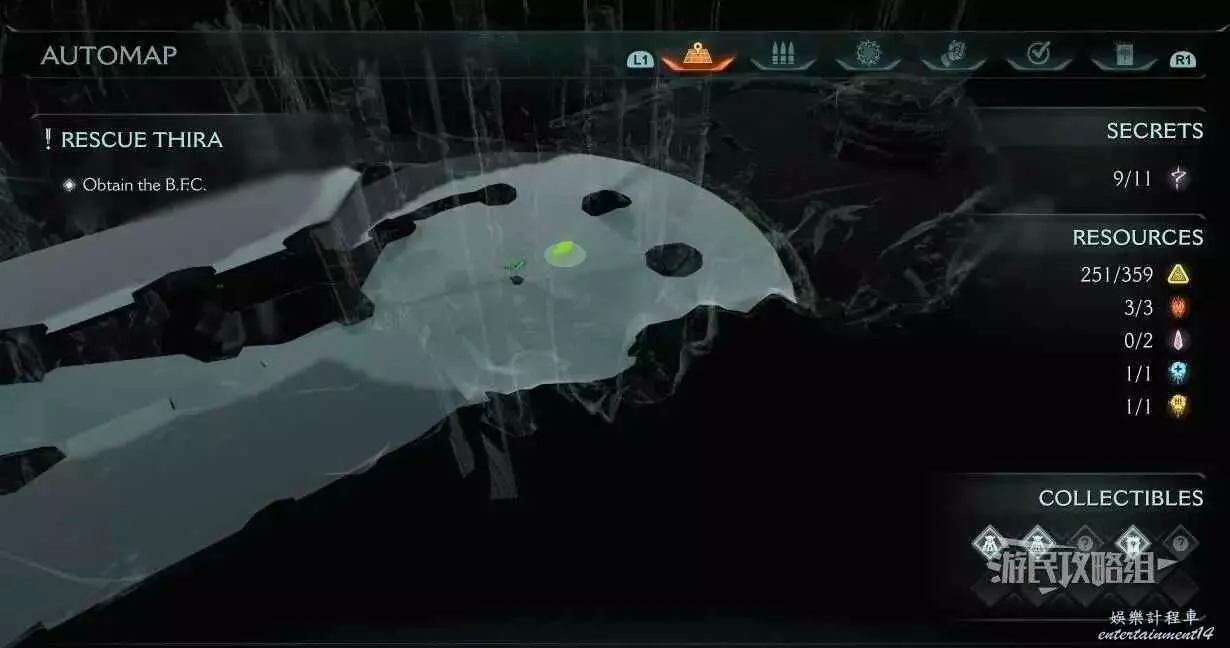 返回本章最初的開闊區域時會降落在一個標有遭遇戰的平台上,使用盾牌穿過縫隙缺口,然後爬上右側牆壁,先不要穿過左側的門,直走並王邊緣看可以看到下方的黃金,跟隨黃金穿過使用盾牌的位置,即可到達一個觸發遭遇戰的平台,擊敗出現的首領即可獲得惡魔精華。