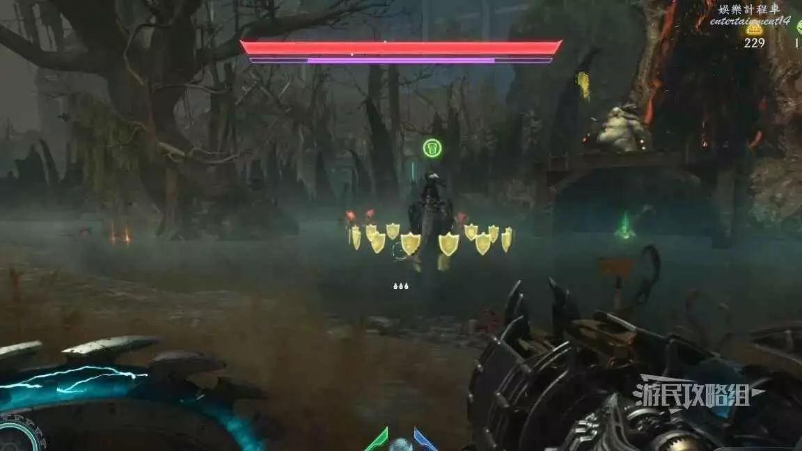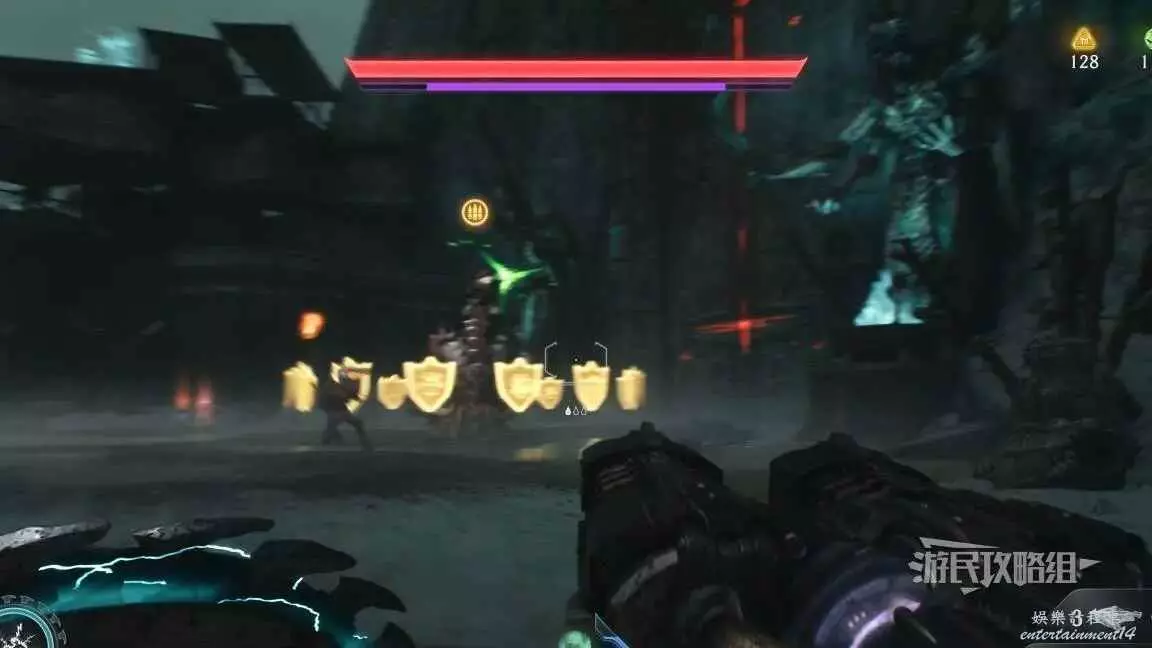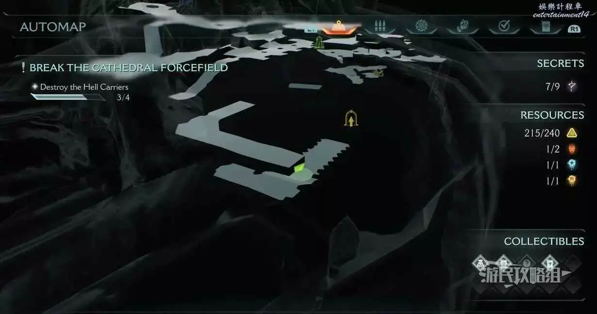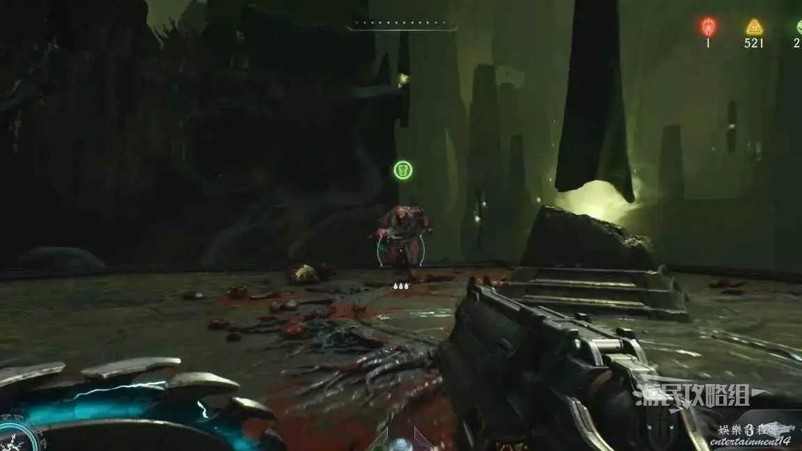 在本章到達哨兵聖壇後不久返回室外時,利用盾牌跳進一個巨大的戰鬥區域,擊敗這裡的BOSS即可獲得惡魔精華。