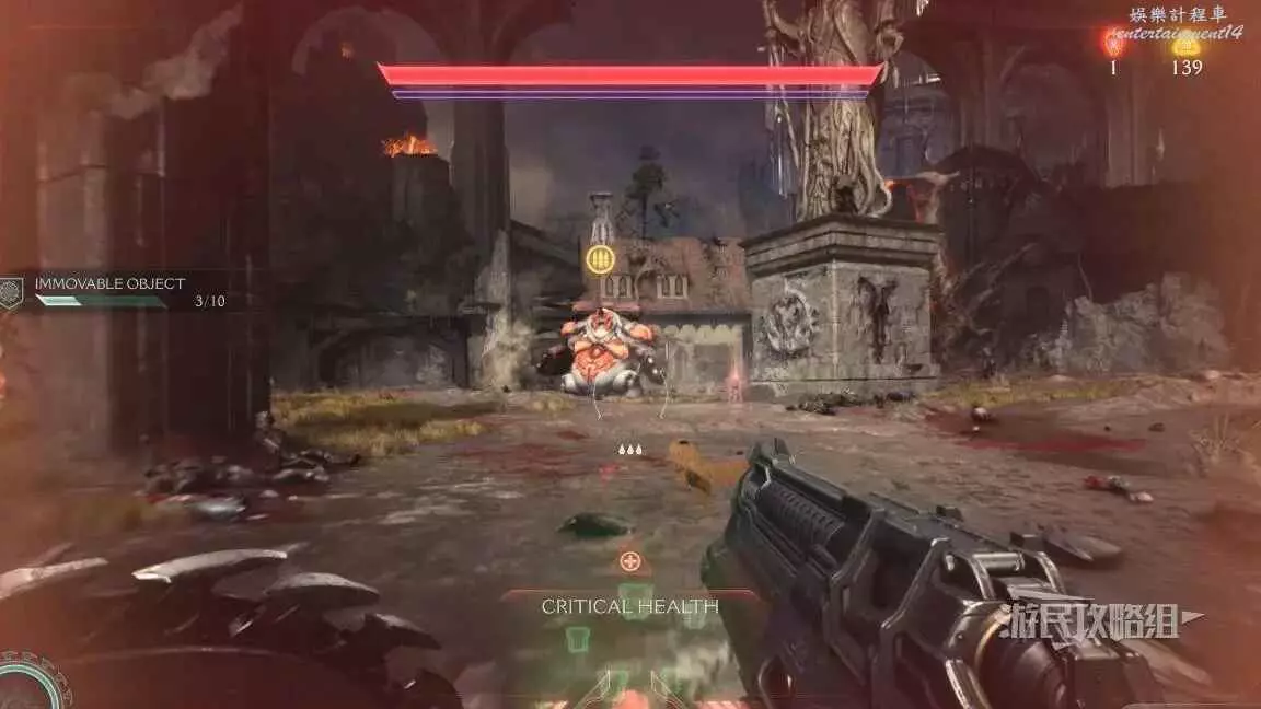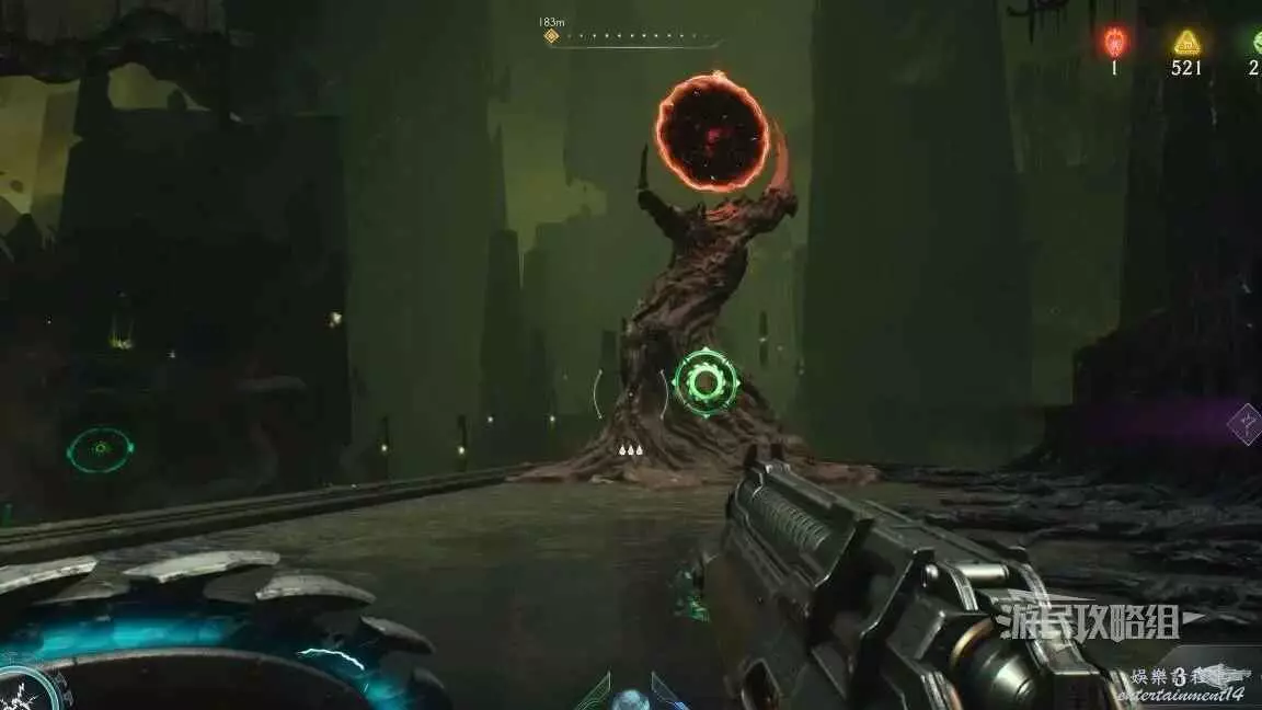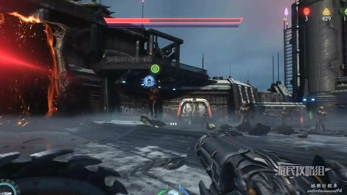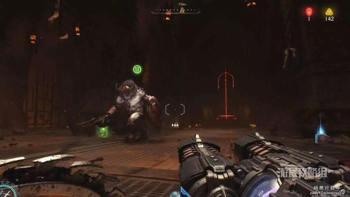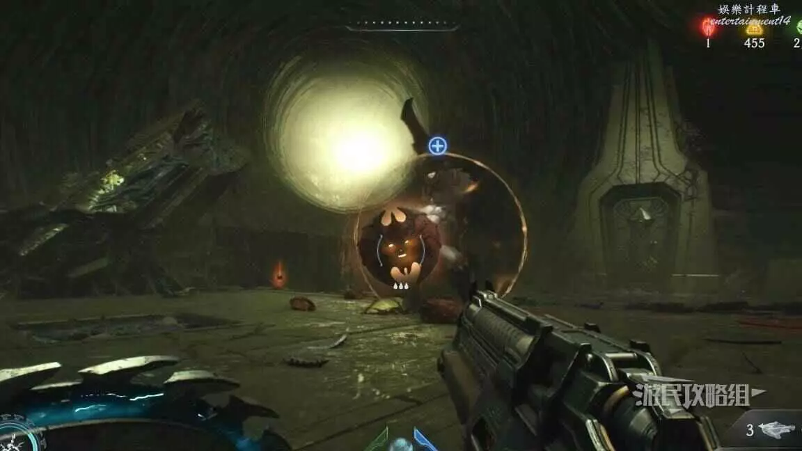 在本章到達哨兵聖壇後不久返回室外時,利用盾牌跳進一個巨大的戰鬥區域,擊敗這裡的BOSS即可獲得惡魔精華。