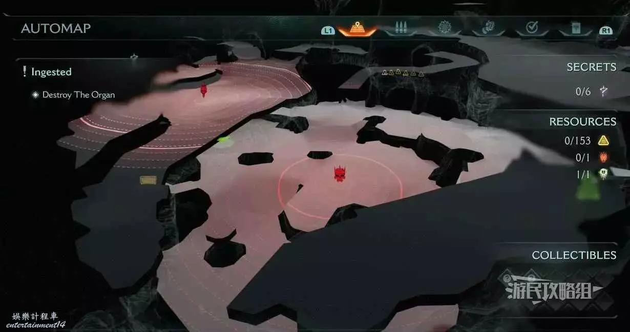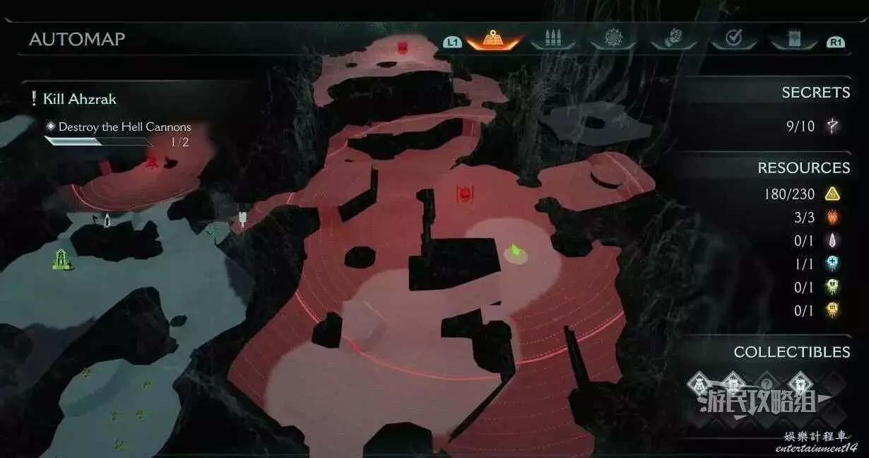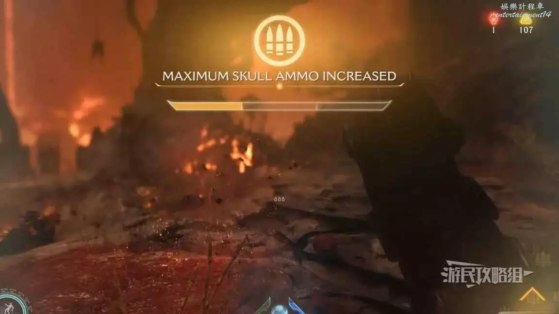 跟隨主線獲得藍色頭骨後,在拾取藍色頭骨的同一個區域從邊緣往下跳,靠近左側需要藍色頭骨開啟的大門,開門之後走到盡頭可以找到一個惡魔玩具。拾取玩具之後下方戰鬥區域會出現大量敵人,擊敗第二波出現的首領可以獲得惡魔精華。