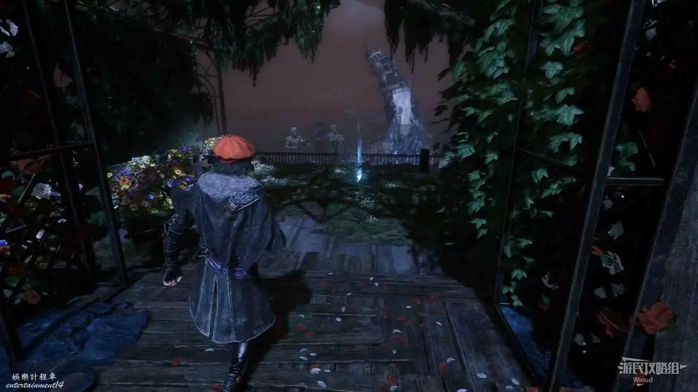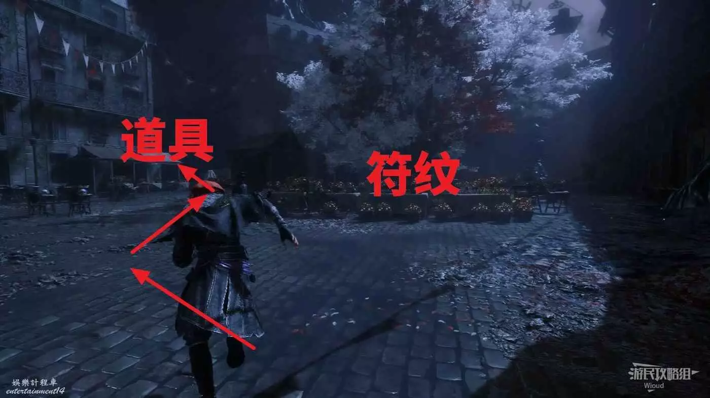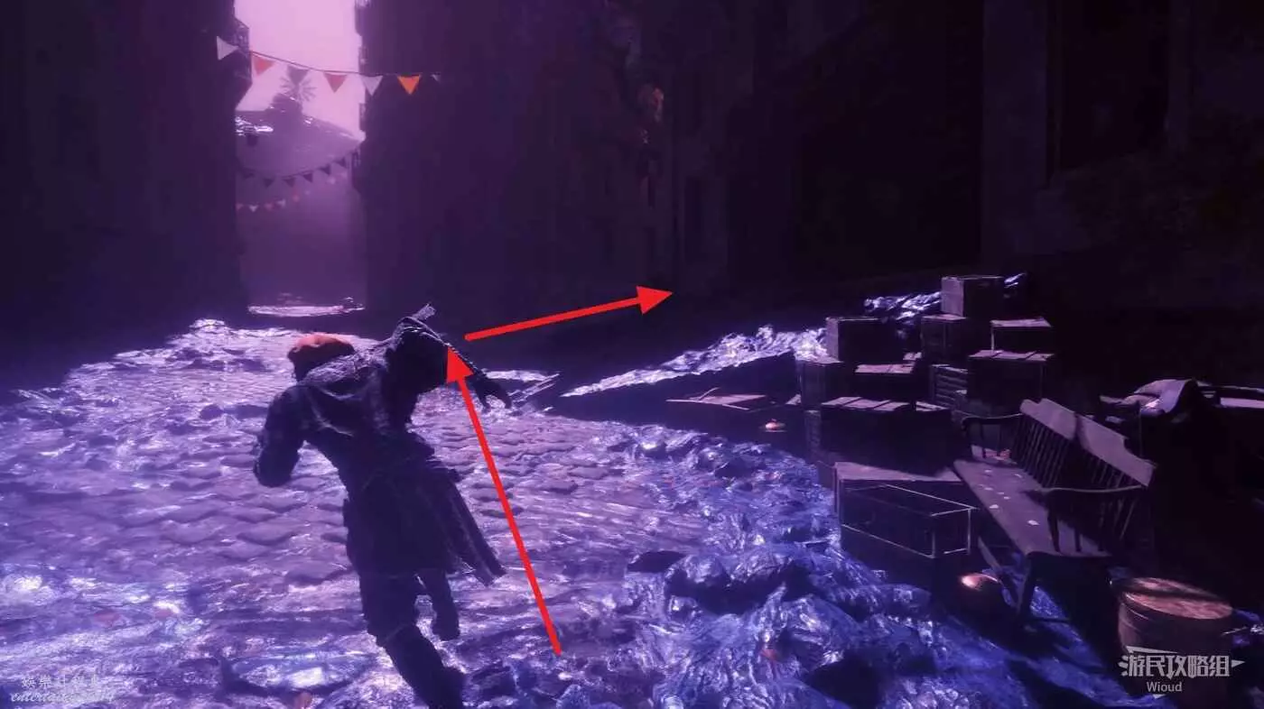 走噴泉後方主路,擊敗第一批敵人後,右側有個過道,裡面比較黑,可以撿到強化道具。
