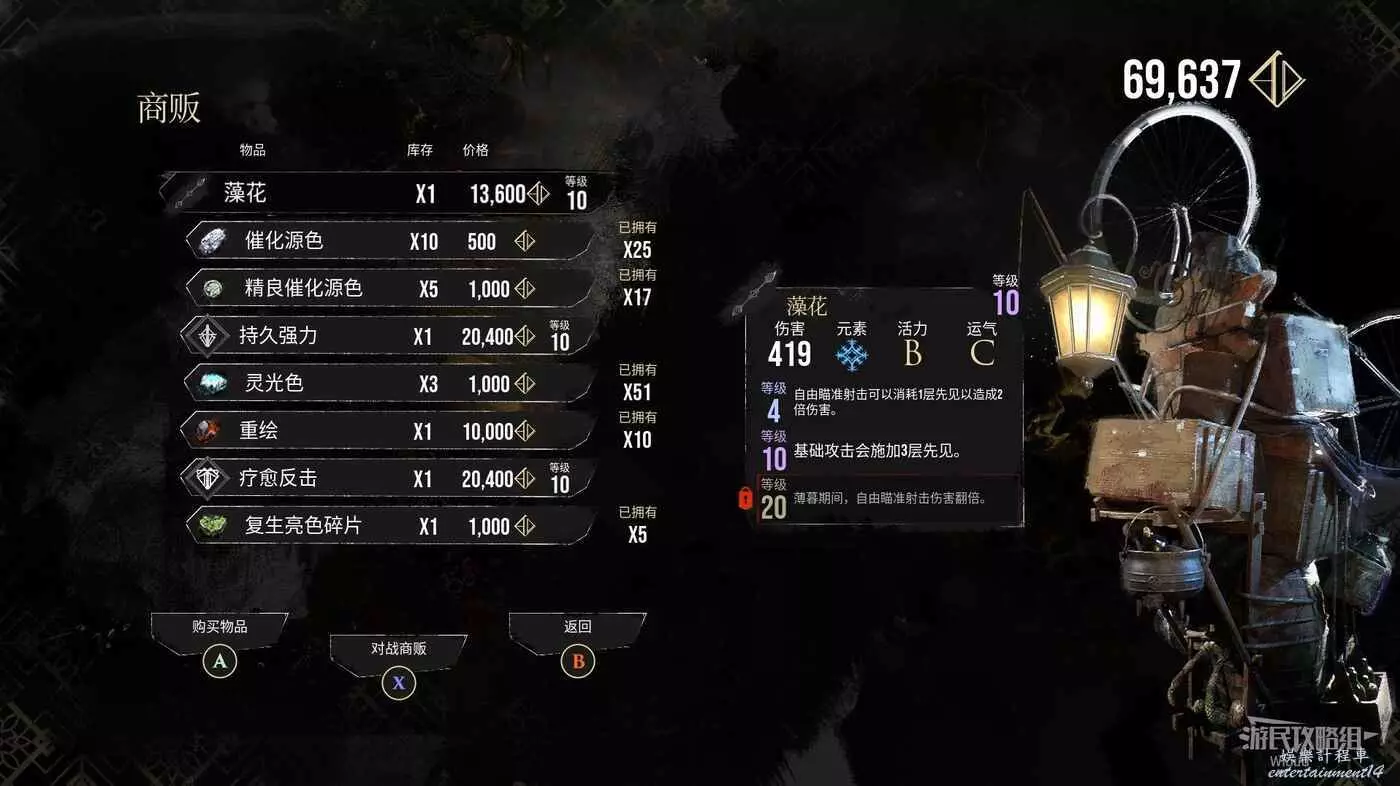 商人位置可購買武器【藻花】、符紋【療愈反擊】。