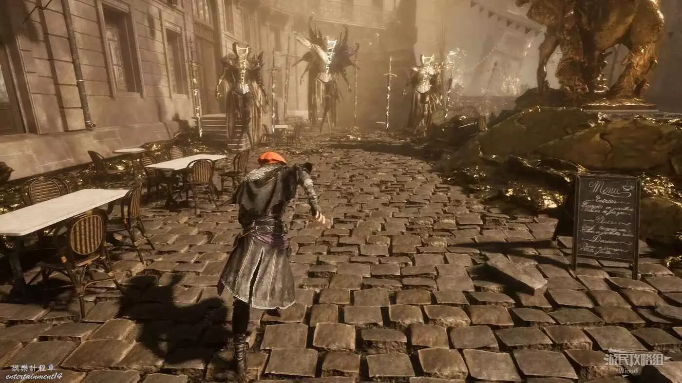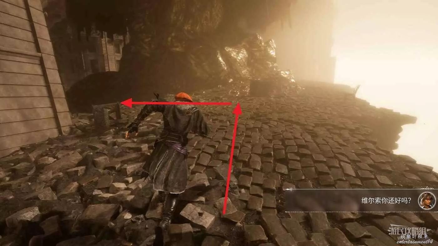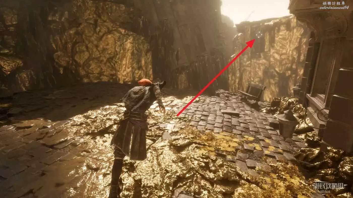 啟動起始點左側的旗幟,擊敗中間噴泉左側的敵人可升級極限格擋。