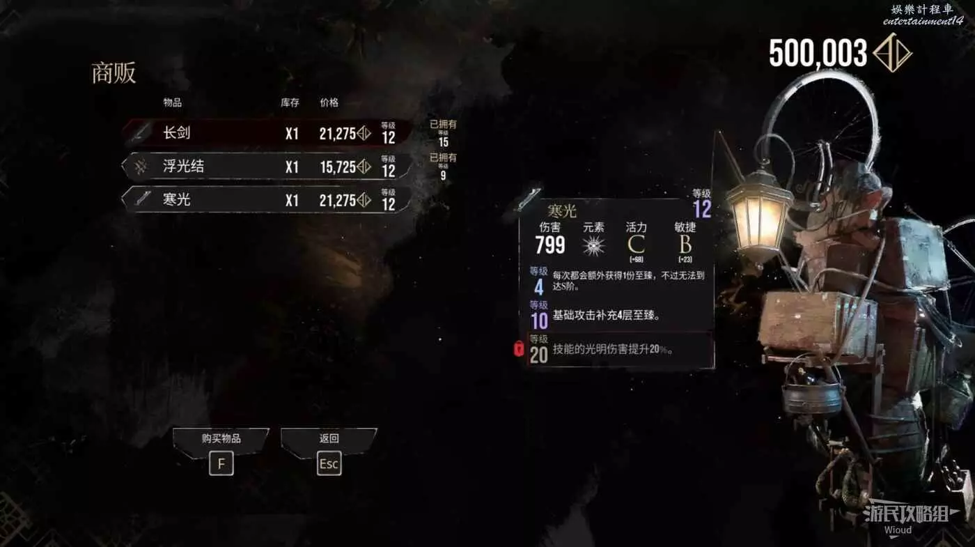 光與影 33 號遠征隊 維爾索寒光獲取方法 14 5 月 2025-05-14 廣告 作者:Wioud 來源:遊民星空 維爾索-寒光 屬性 元素:光。 補正:活力(C)與敏捷(B)。 詞條 等級4:每次都會額外獲得1份至臻,不過無法到達S階。 等級10:基礎攻擊補充4層至臻。 等級20:技能的光明傷害提升20%。 獲取方法 位置如下圖所示。 啟動起始點旗幟往裡走,來到開闊區域後左拐,有【靈光色】可拿。 與洞穴中間的經怪對話然後擊敗他們,可購買武器【寒光】。