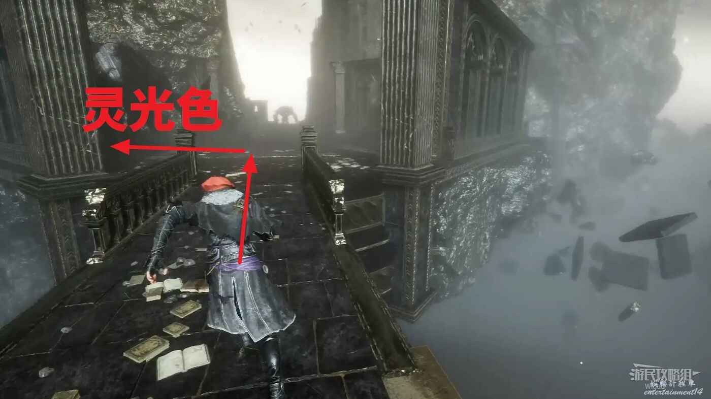 沿路走,穿過一個方形拱門後左拐,可以撿到一個【靈光色】。