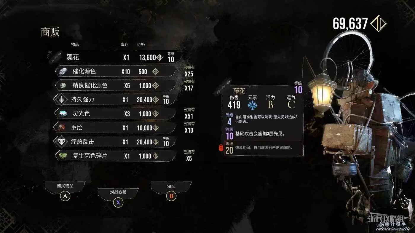 商人位置可購買武器【藻花】、符紋【療愈反擊】。