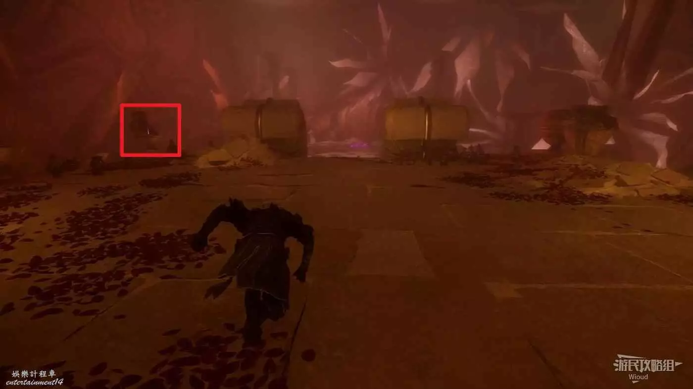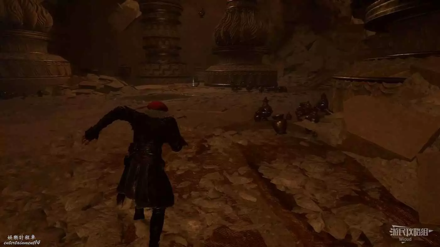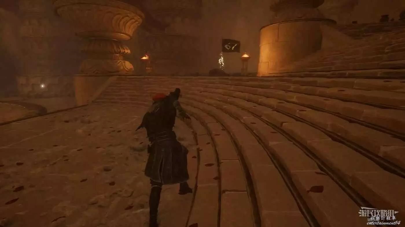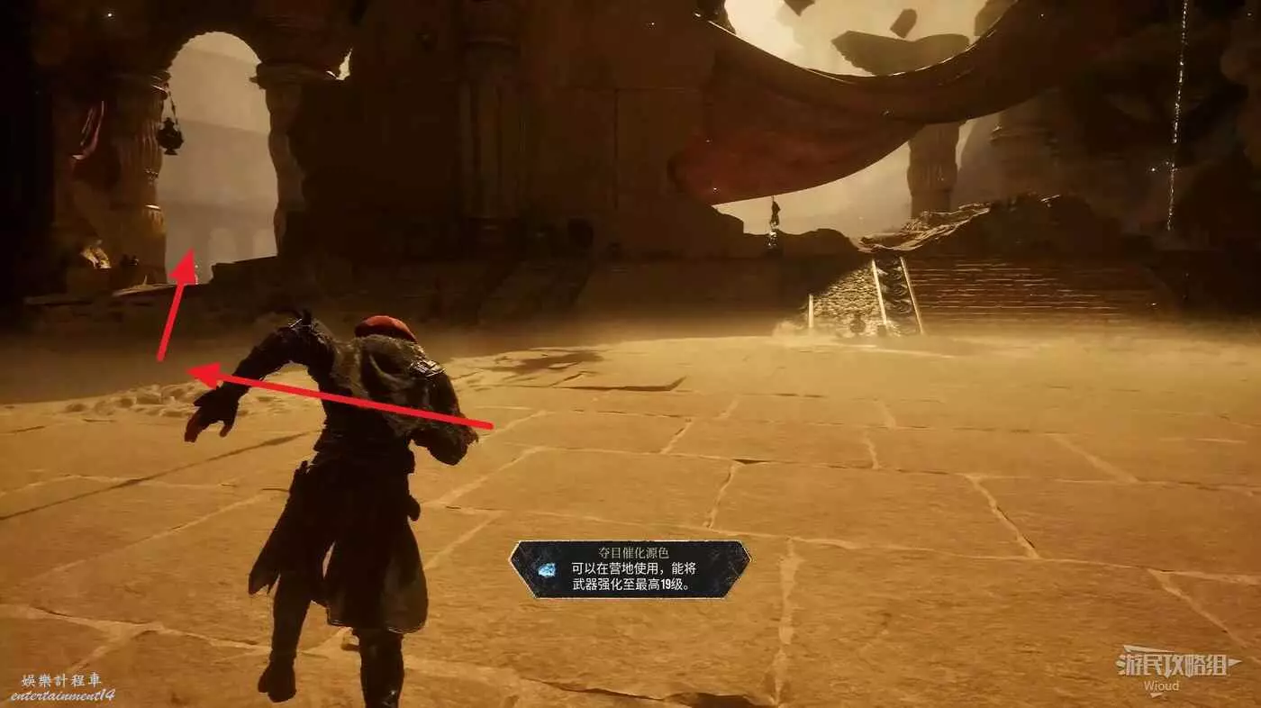 轉頭面對旗幟,左側有個特別大的拱門,過去途中可以撿到一個【精力碎片】。