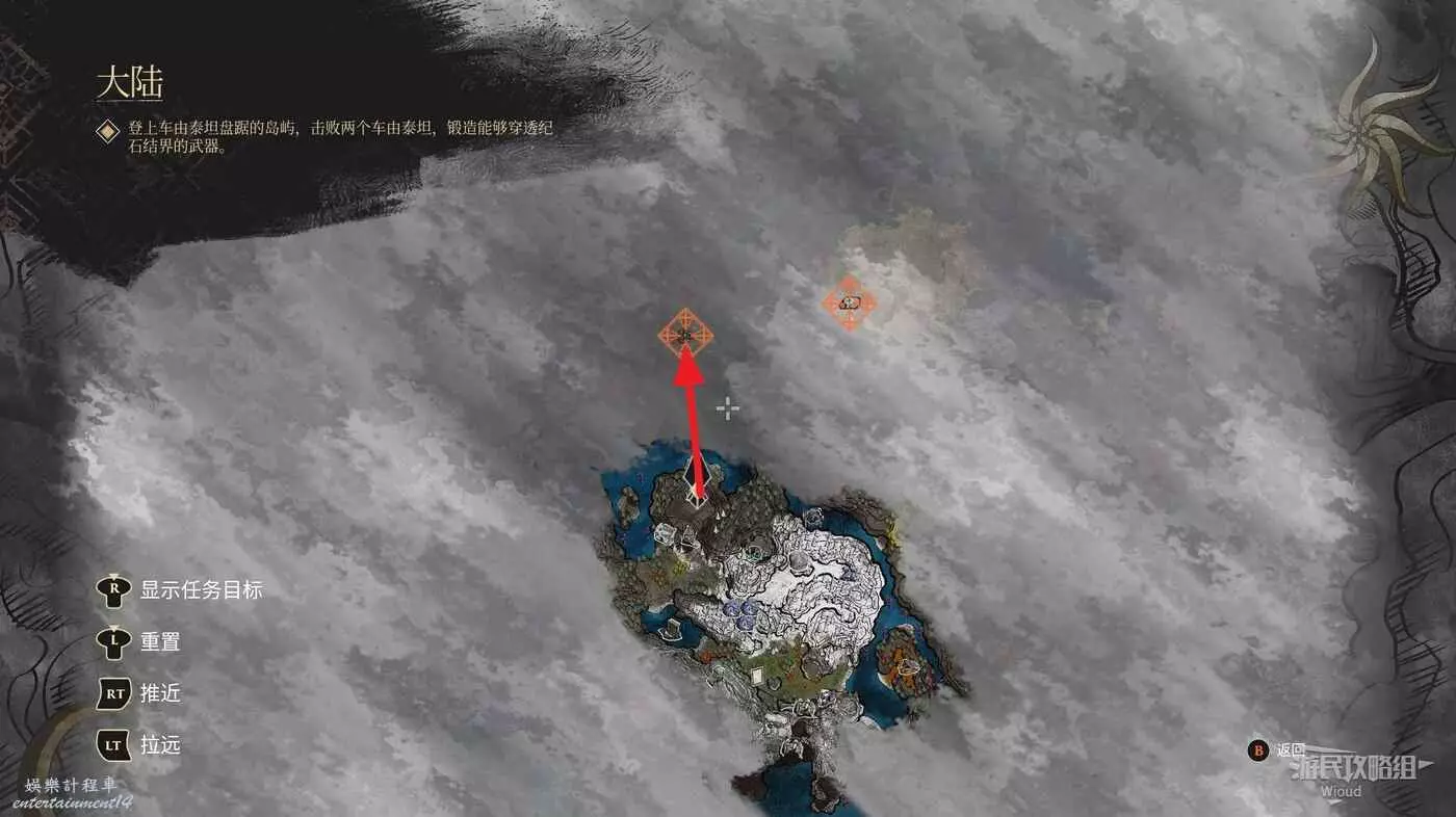 傳送到宅邸區域從出口來到大地圖,走到下圖所示的第一隻車由泰坦【千面】的關卡處。