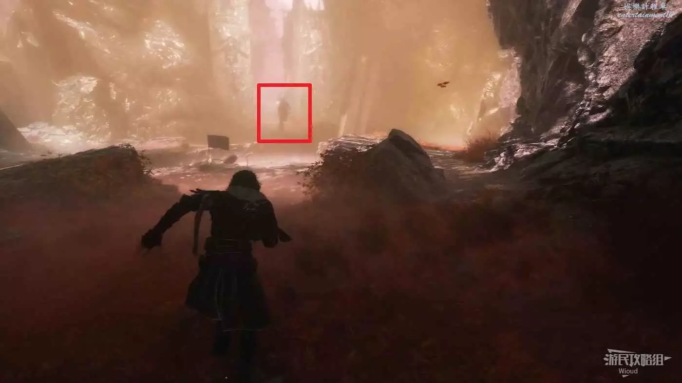 進入地圖沿路走,直到左側出現一條大路,前面直走可拿到一個【靈光色】,左拐進入大路不遠處找到第一個旗幟並觸發劇情。
