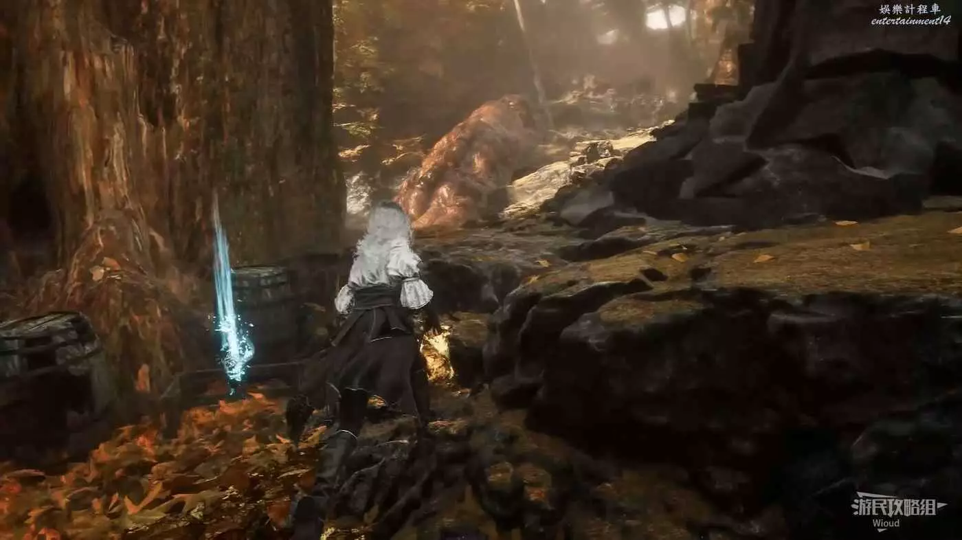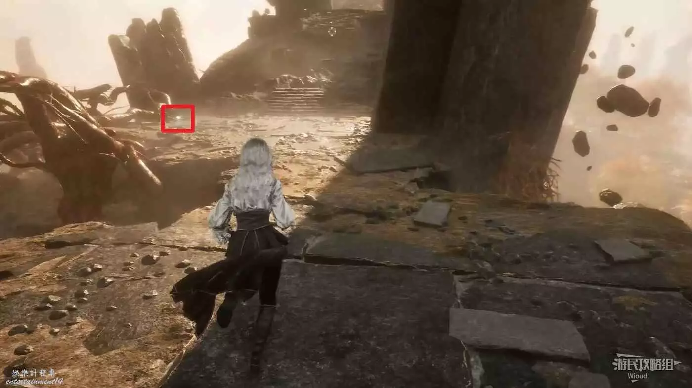 穿過大門沿路一直走,直到通過一段超長的繩索來到較高的平台,可以直接拿到【49號遠征隊日誌】,不會錯過。