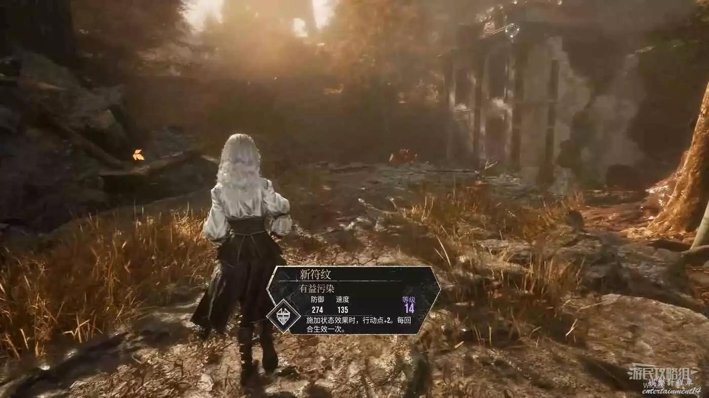 轉頭往回走,過橋時可以看到對面右側有個大木樁子,木樁子另一側可以撿到符紋【應急迅捷】。