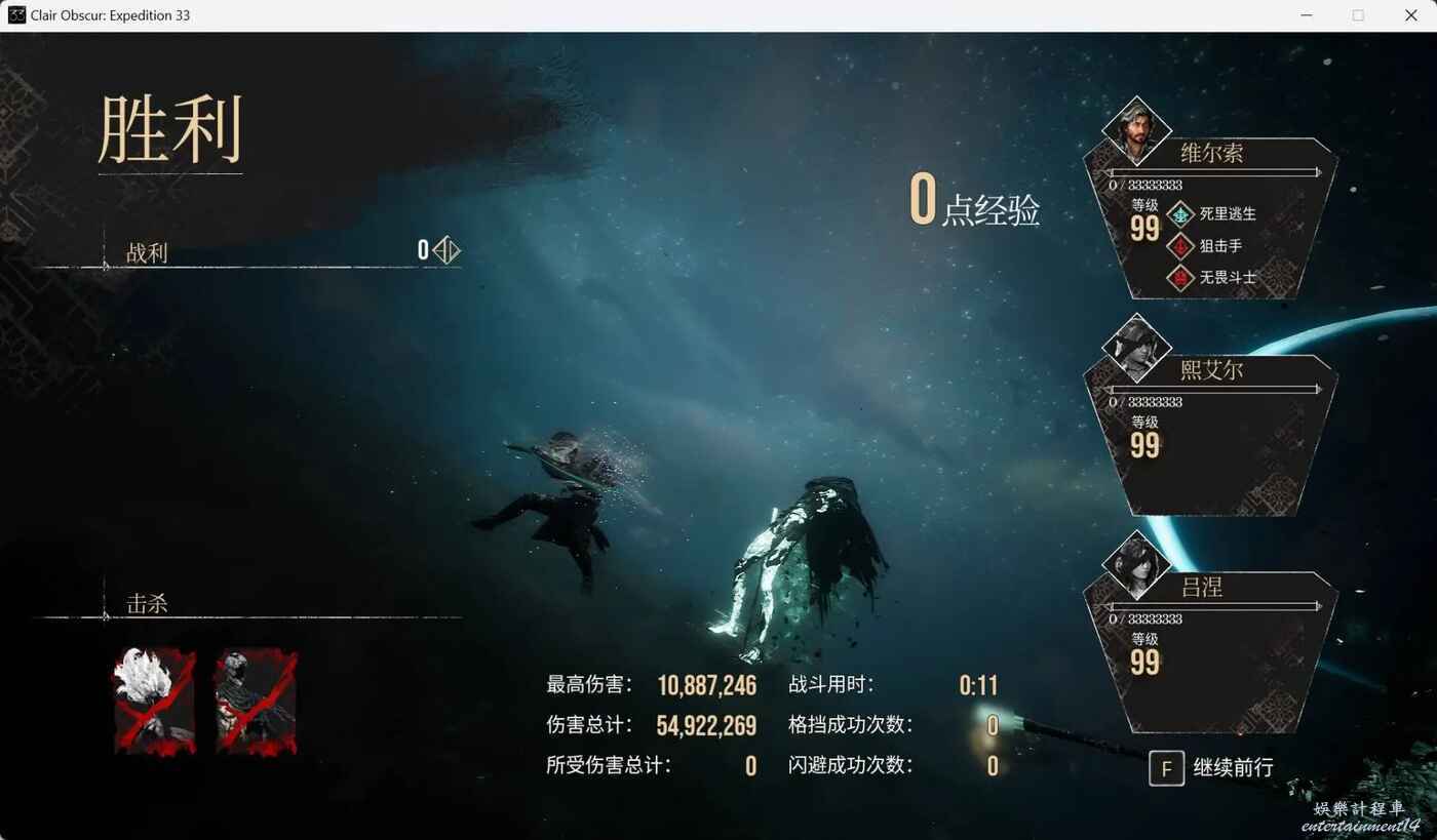 當然,這裡很明顯利用繪侶共用血條的機制偷雞了,單體上而言其實是沒有達到5000w的預定標準的。或者說,面對二階段西蒙這種血牛,呂涅會需要隊友進回合才能處理。即使換成單體倍率更高的霹靂繚亂,該配置下的傷害也只有3668w,離5000w的標準還有不小距離。這也從側面印證了之前說的呂涅的機制就不適合秒怪賽道。往好處想是元素初生作為群傷技能,處理群怪會比妹妹和維爾索更輕鬆,如果你用這套的配置和步驟去打無盡塔的11-2也是二動秒殺。
