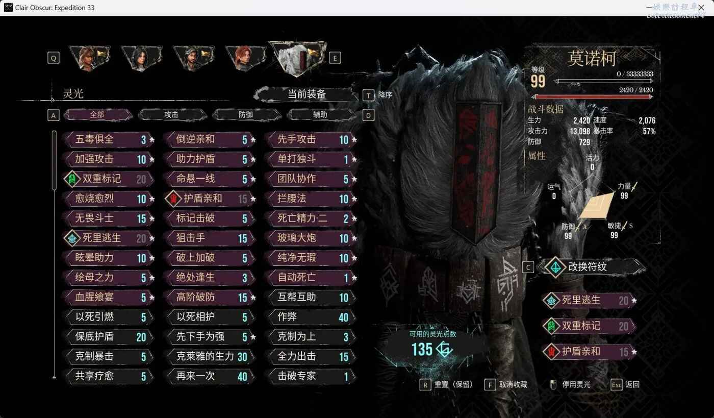 寶可夢角色。一開始看到收集技能的機制介紹時,還在想擁有這麼多技能的角色一定十項全能吧,解鎖完才發現除了司燈光耀剩下的都是來湊數的……傷害技能給了一大堆,但如果細看技能倍率其實只比維爾索高,大部分倍率不突出的技能說實話和不存在沒有什麼區別,無非就是滿足下玩家的收藏喜好。輔助能力倒是給的挺全面,幾種buff / debuff、擊破、上標記、回血、給護盾,應有盡有。但問題是這些技能的功能性都能在靈光裡面找到,給其他角色裝點功能性靈光就能達到想要的效果,換句話說,其輔助能力沒有不可替代性。相比之下,熙艾爾的命運之怒和命運干預,維爾索的塞壬刀提供的功能性都是僅此一份的,作為輔助役而言要更勝一籌。加上自身入隊最晚,導致莫諾柯一直是主控角色裡存在感最低的一位。