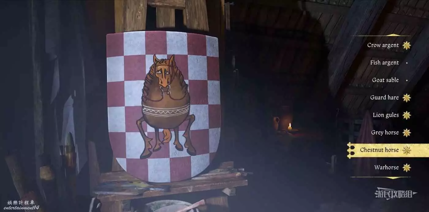解鎖盾牌自訂功能需要先開啟DLC生死繪夢(需完成主線任務【絕境喪鐘/喪鐘為誰而鳴】),在地圖上特羅斯基城堡南邊可以看到一個紫色任務標記,遇到畫家維頁塔並觸發任務【妙筆生危】,幫維頁塔找回畫筆套裝和骰子(骰子為可選項,拿到骰子後他會在後續任務中送給亨利)並歸還後,當維頁塔回到他在特羅斯基城堡內的工坊後,白天前往工坊與維頁塔對話選擇【幫我畫個盾牌】即可進行自訂盾牌。