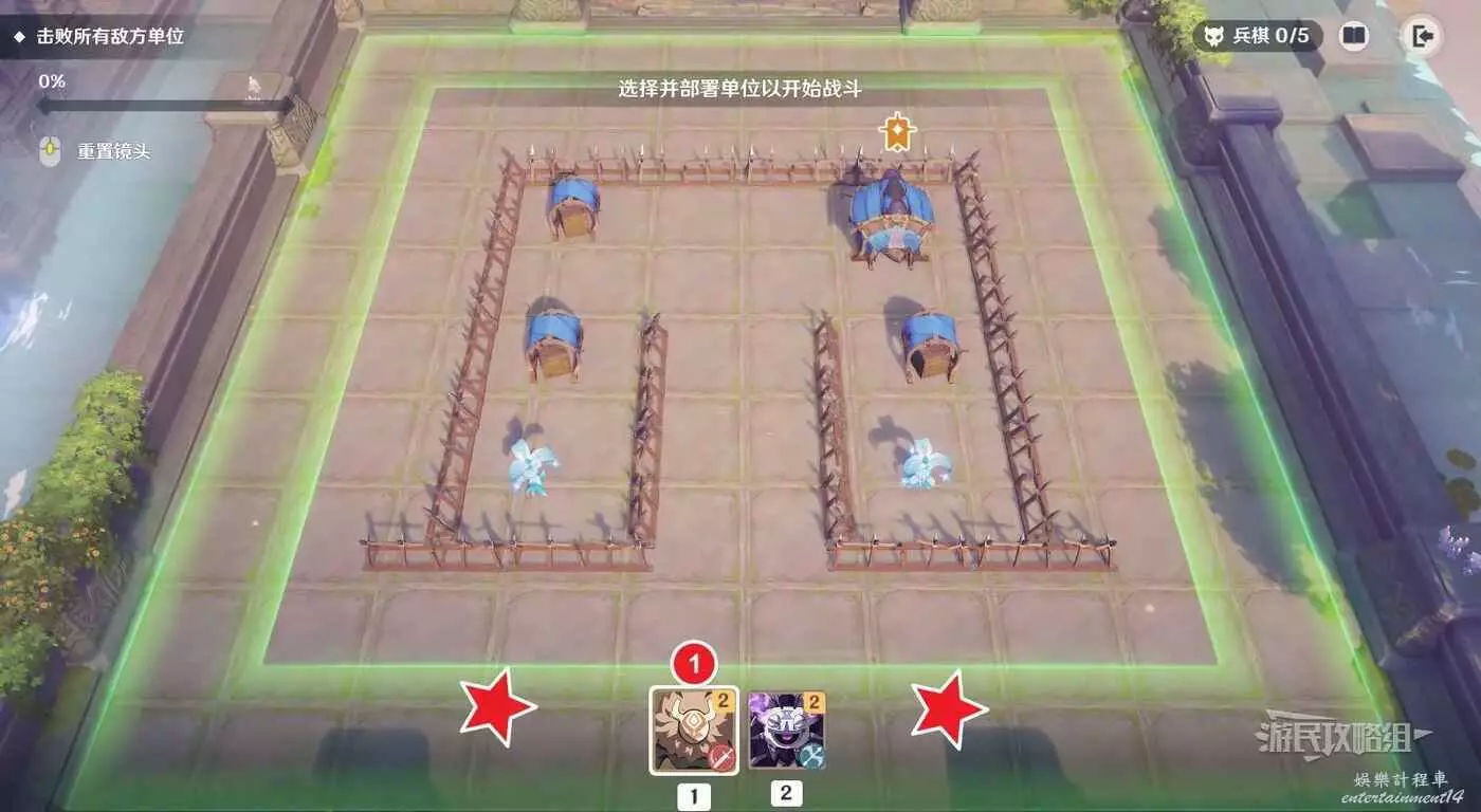 第二關開始前,在兩個敵方史萊姆前分別部署一隻遺跡守衛(共2名)。