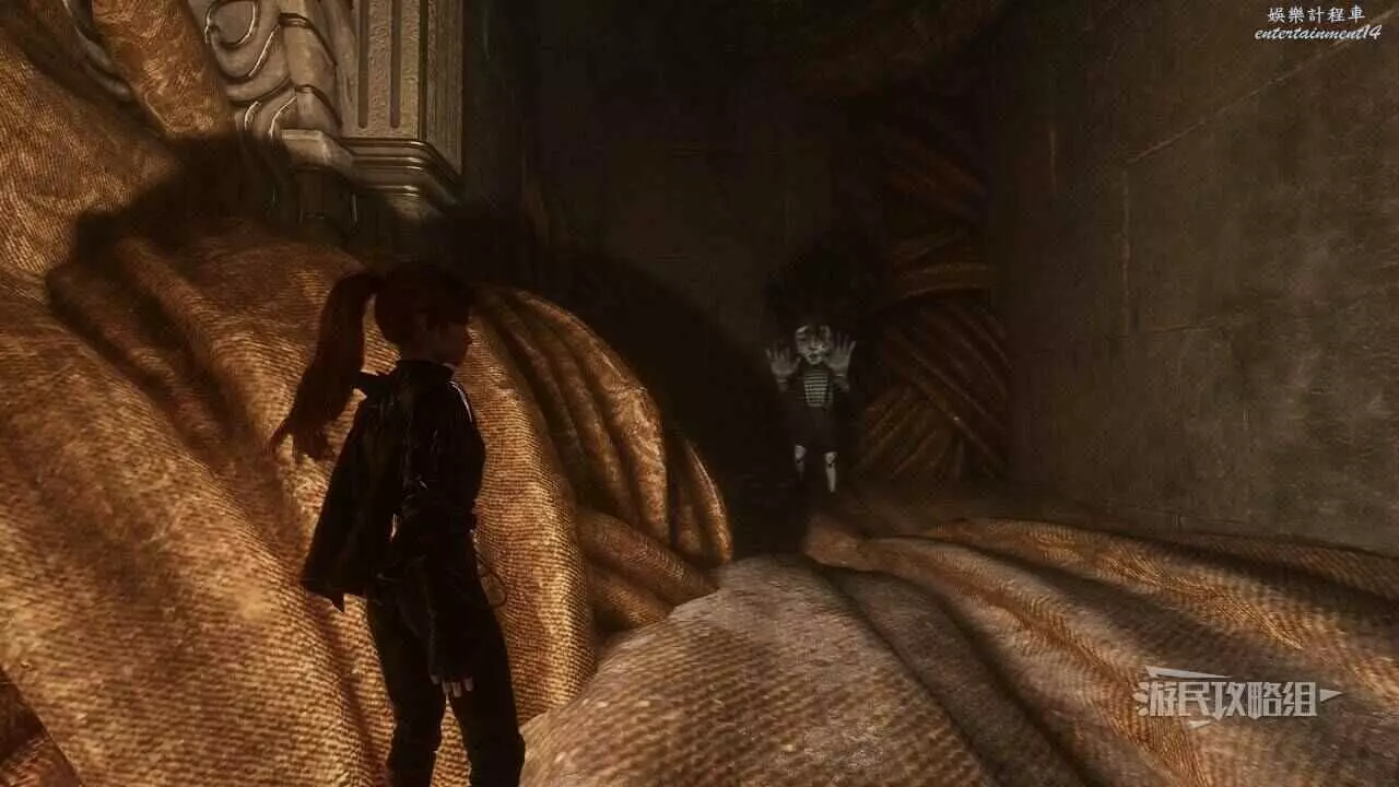 此時應該能聽到默偶的聲音,進入下圖所示的東北方向通道並左轉,即可看到默偶。