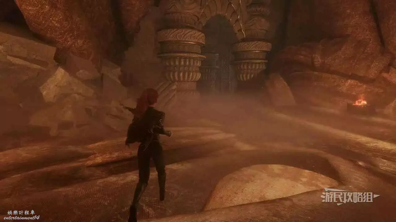 到達另一側後任選一條路,無論是走左邊小路到下層,還是走正前方小路用繩索,都可以往東北方向看,找到一個拱門。