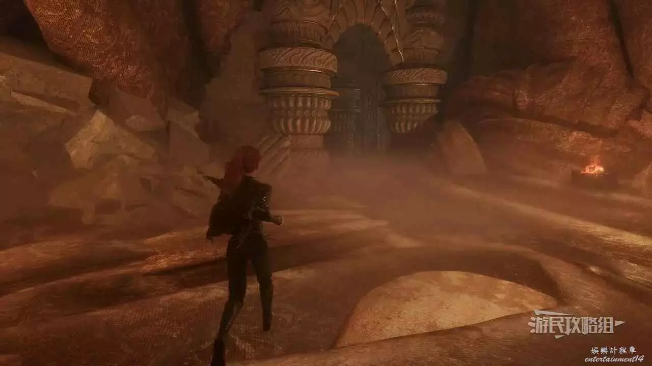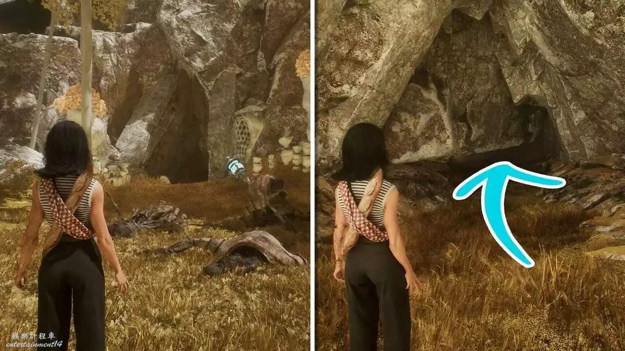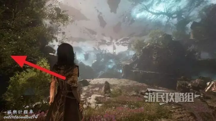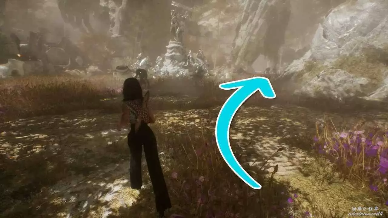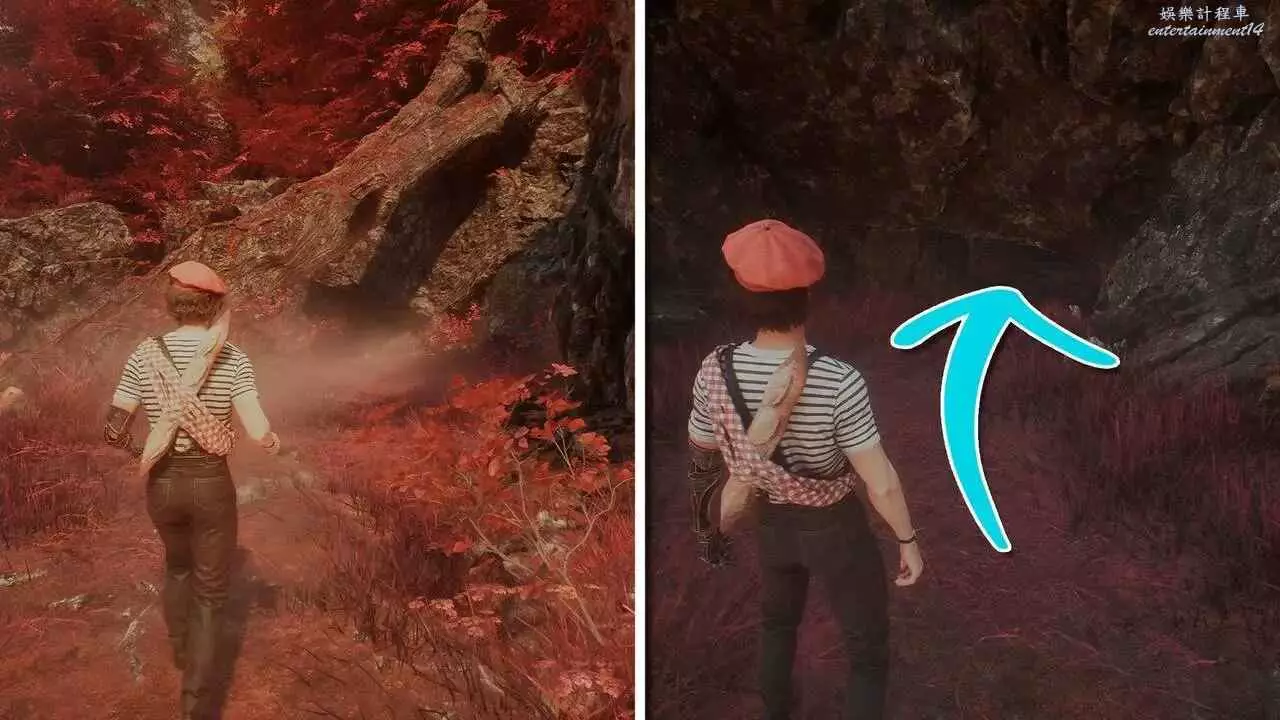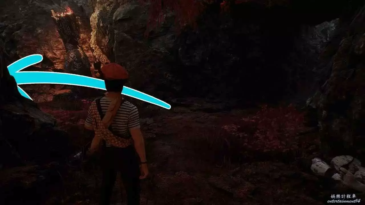 到達另一側後任選一條路,無論是走左邊小路到下層,還是走正前方小路用繩索,都可以往東北方向看,找到一個拱門。