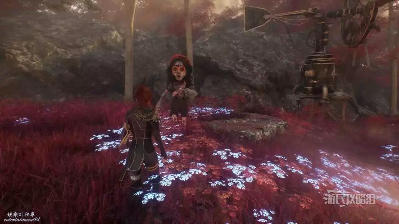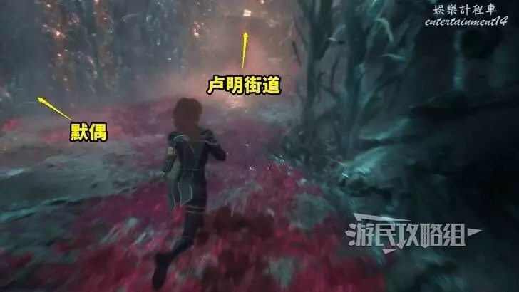 此時應該能聽到默偶的聲音,進入下圖所示的東北方向通道並左轉,即可看到默偶。