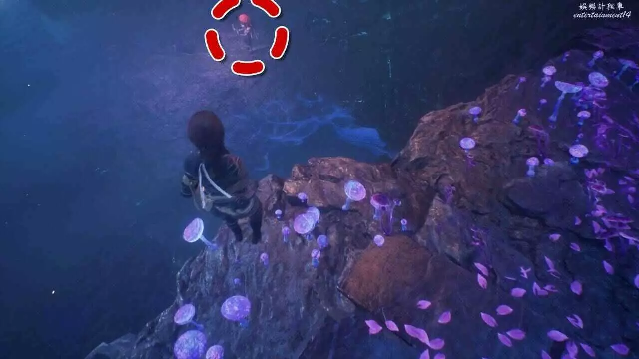 使用繩索到達下層後,往前走幾步,右轉可以看到另一根發光繩索,使用繩索往上走,即可看到默偶。