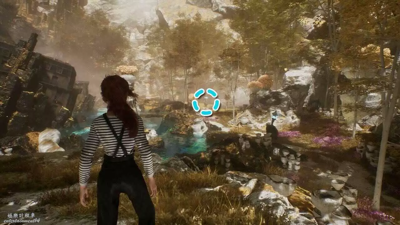 從古代聖所的【聖所迷宮】遠征隊隊旗出發,往北邊朝著遠處的鐘前進。穿過倒塌的樹幹後右轉,下蹲穿過小路到達一個路口。