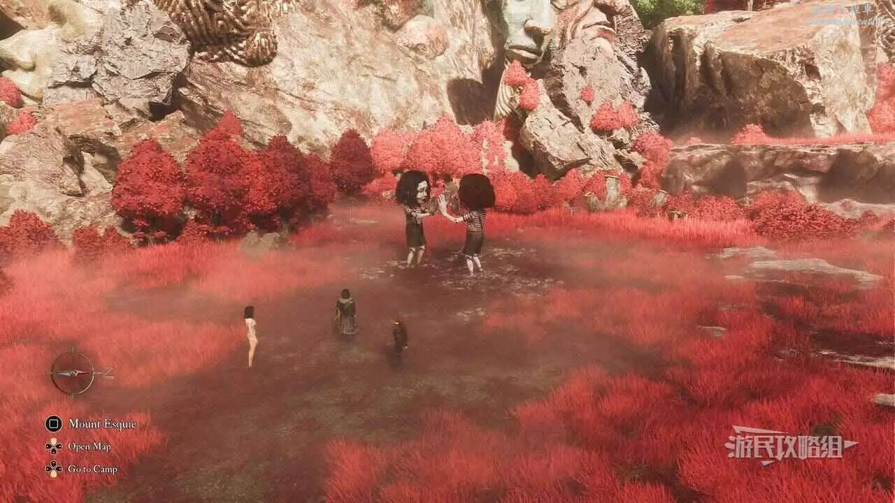 從【盧明街道】遠征旗位置穿過海草再左轉,不要爬牆,一直沿路前進可以看到另一面可以攀爬的牆,爬到頂端就能看到這個默偶,具體路線可以參考這篇攻略。