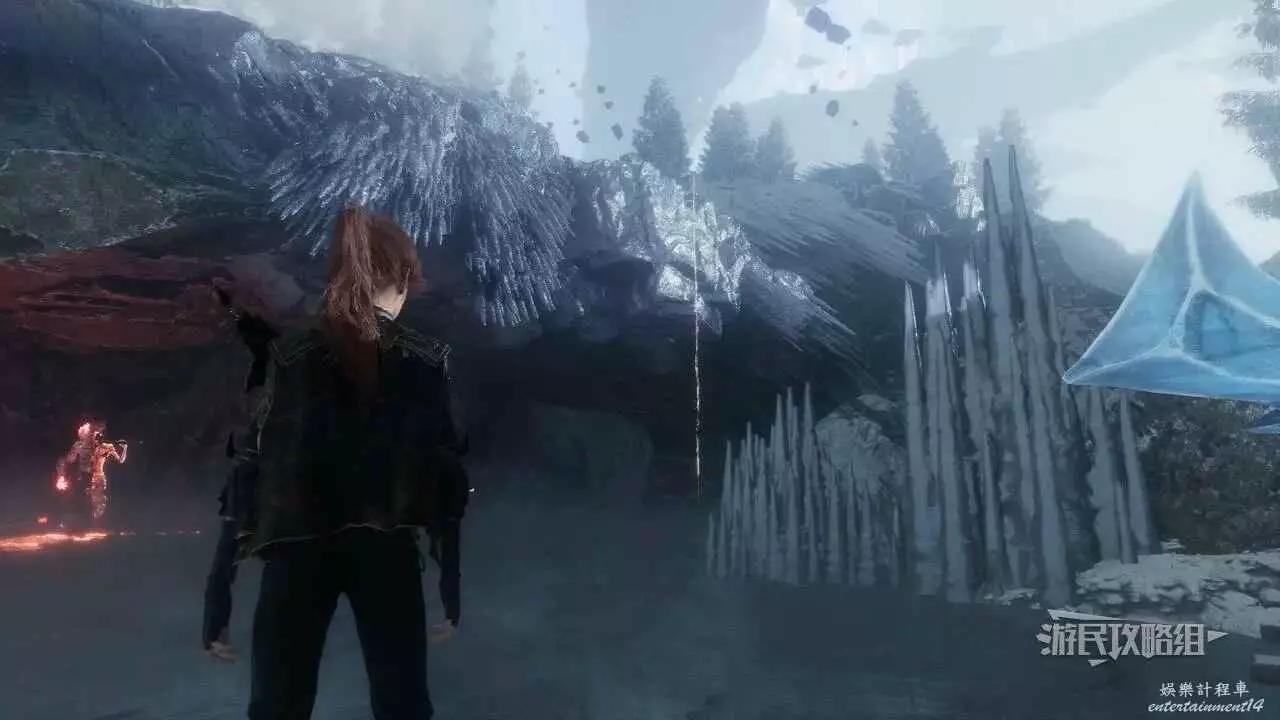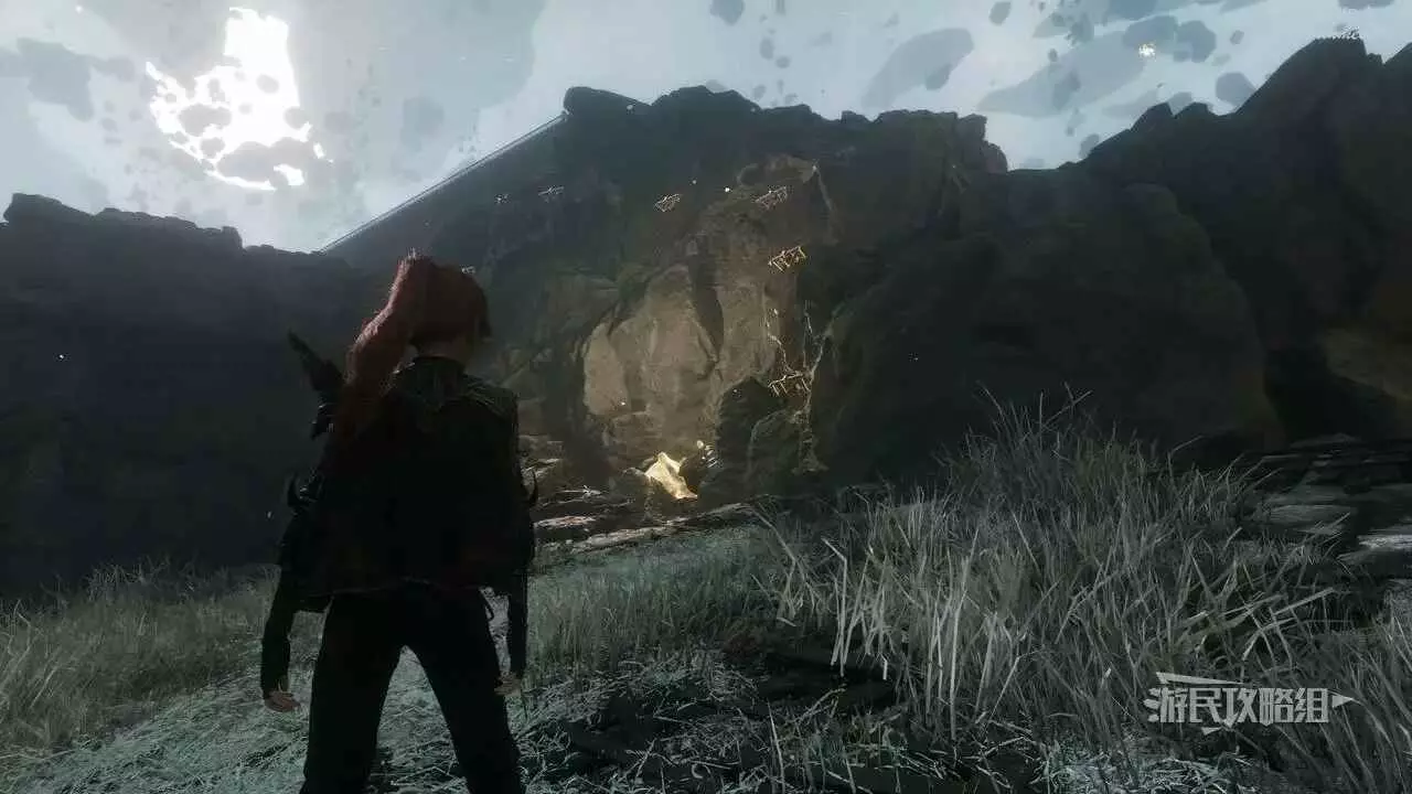 如果還沒有找到【冰心林】遠征旗的話,可以從【冰封車站】遠征旗出發,穿過火車軌道,繼續穿過西北方向的狹窄小路,左轉在一個山洞裡找到繩索。