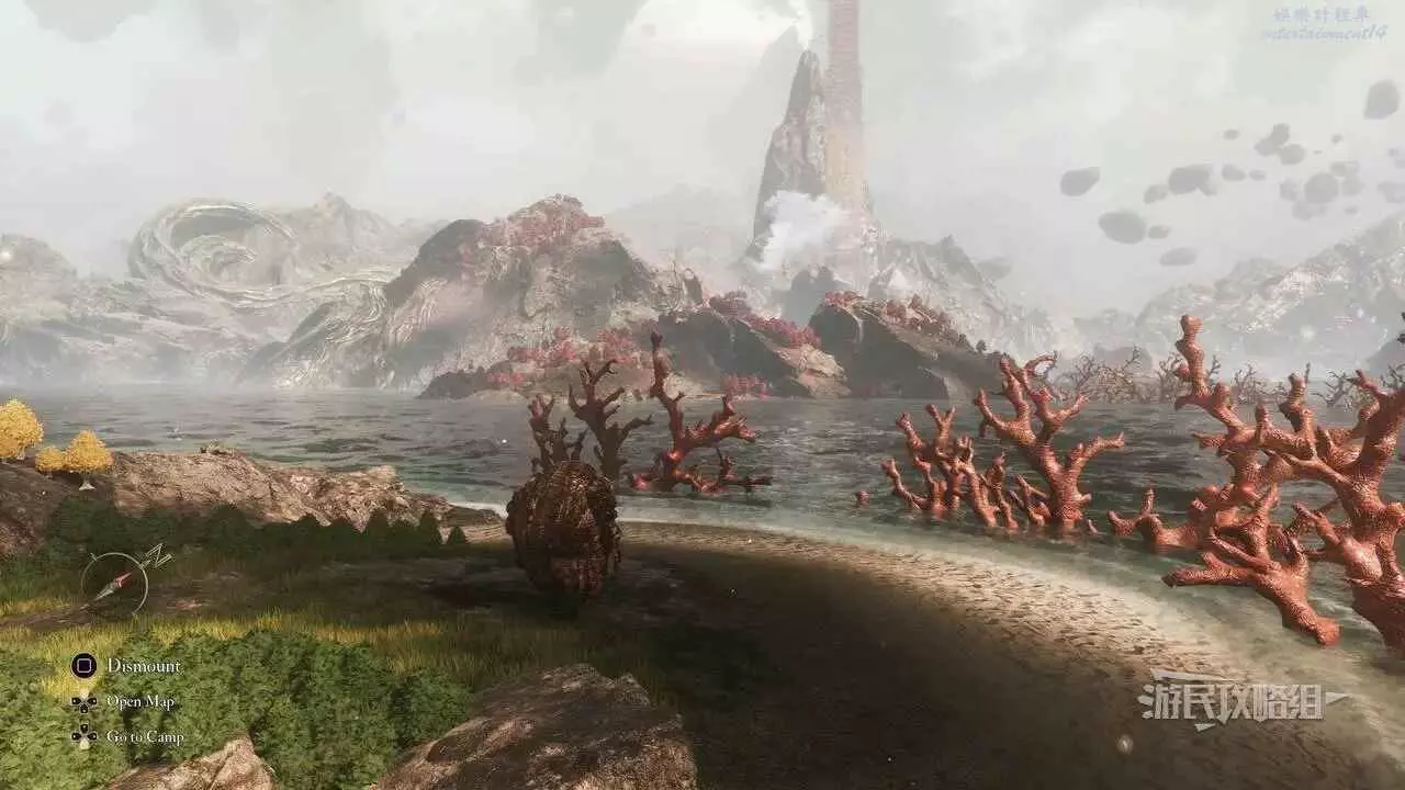 在完成盧明舊城的主線劇情後即可立即進入此區域,探索之前因遠征隊意外分裂而無法進入的區域。此默偶的路線不唯一,這裡建議從北邊海灘上的入口進入盧明舊城,然後往西南方向走,找到【宅邸外苑】遠征旗。