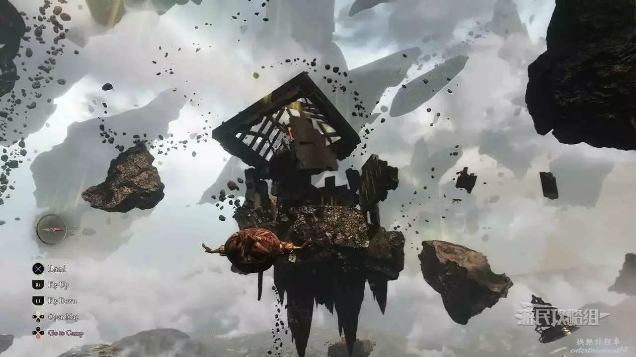 使用繩索到達上層,往東北方向前進,爬上第二條發光的繩索。