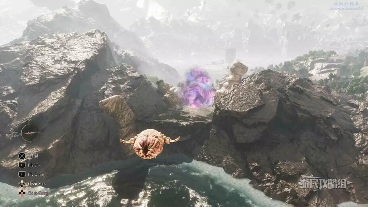 進入探天區域後,使用第一個熱氣球到達西南邊,使用2次抓鉤穿過峽谷,著陸後往西走到前方岩壁上,右轉找到第二個熱氣球。