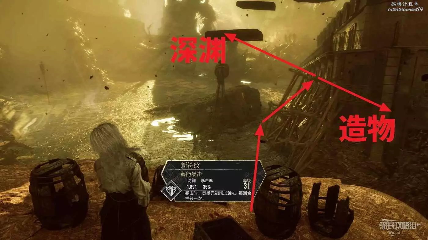 完事往區域右側走,左上角有個入口通往下一個區域【深淵】,右側可找到兩個秒筆造物。