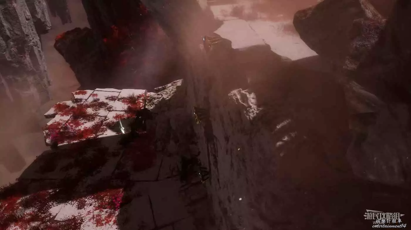 此處我們可以通過跳木板到對面平台拿一個【靈光色】,旁邊還可以啟動一個繩索近路,回到跳木板的位置,從倆木板中間直接跳下去。