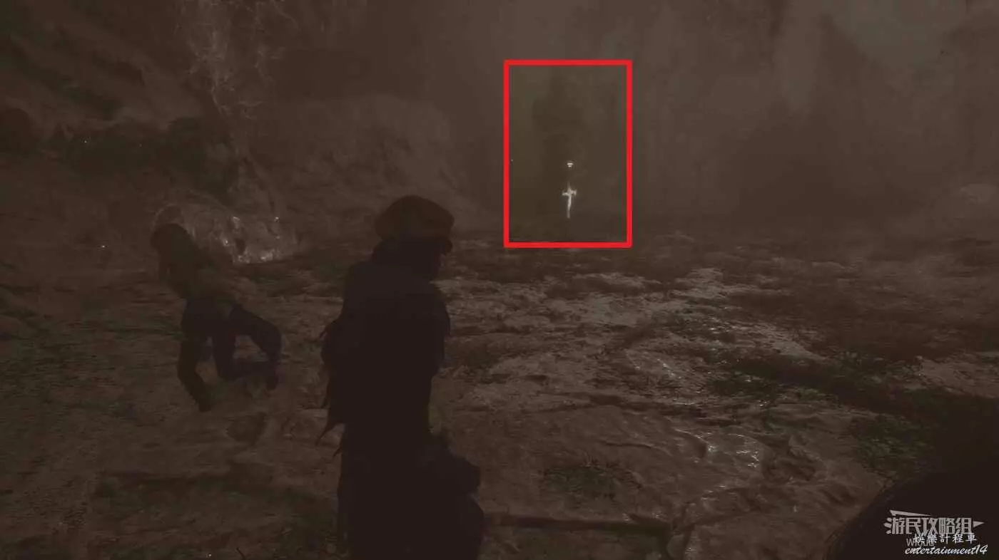 底部就是第三個雕像,雕像朝向對面還有道具可拿,啟動第三個雕像濾鏡恢復正常,從右側的隧道鑽出去返回【三劍合璧】旗幟位置。