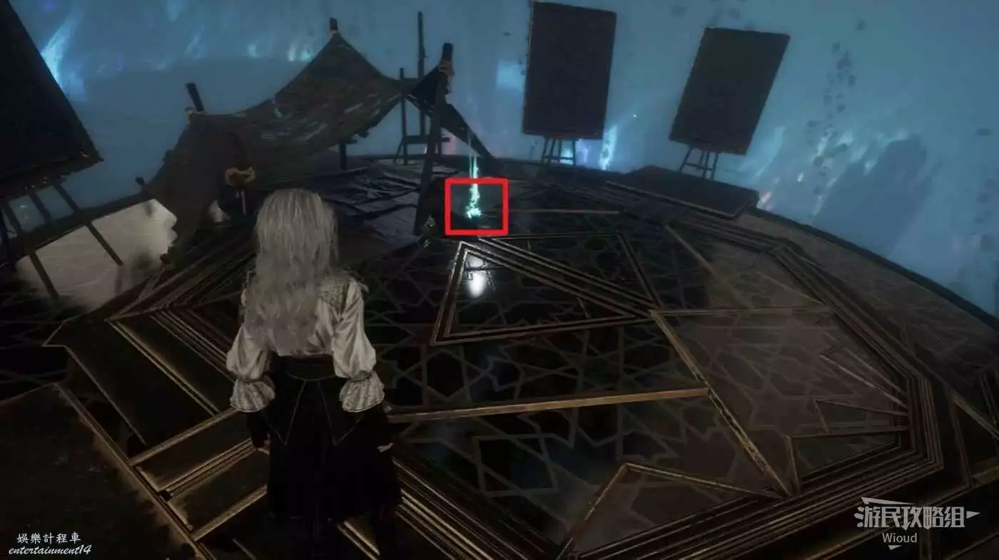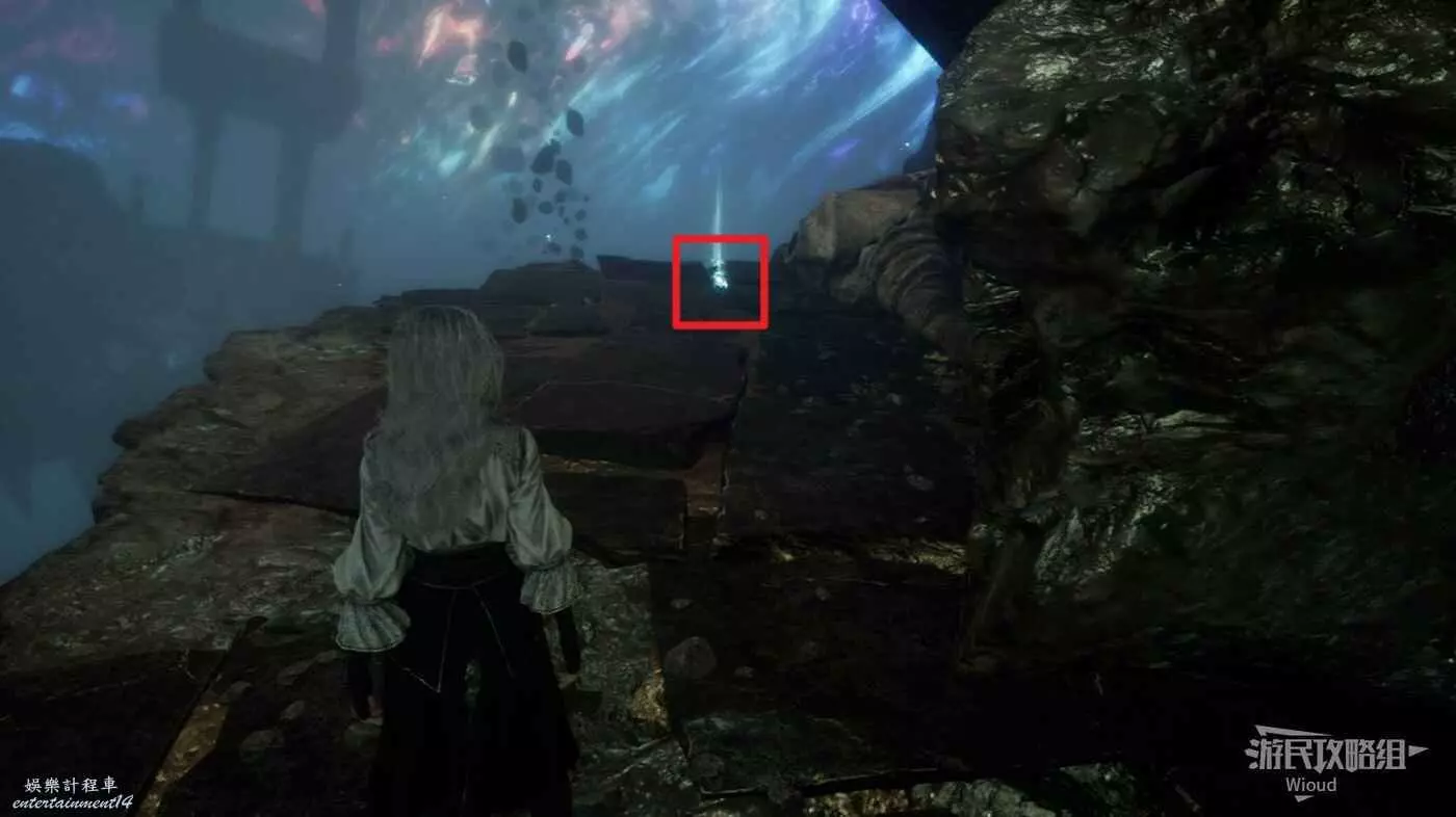 回到剛才下來的樓梯口,直接往右側有藍光的怪物位置走,此處可撿到一個【靈光色】。