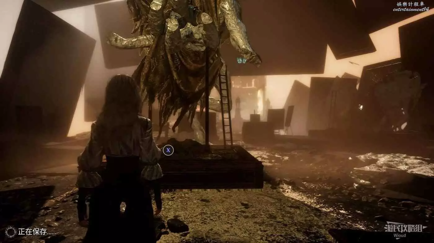 然後沿著男孩後方的發光絲線繼續往後跳,會找到一個司燈的標本,與其互動把剛才拿的道具給它。