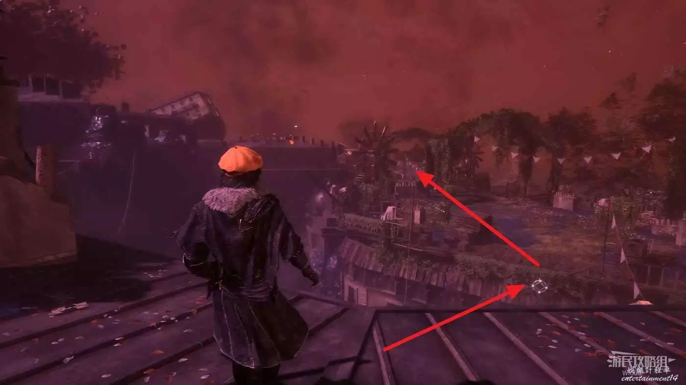 走市場中間擊敗兩個怪物往裡走,爬繩索到高層。