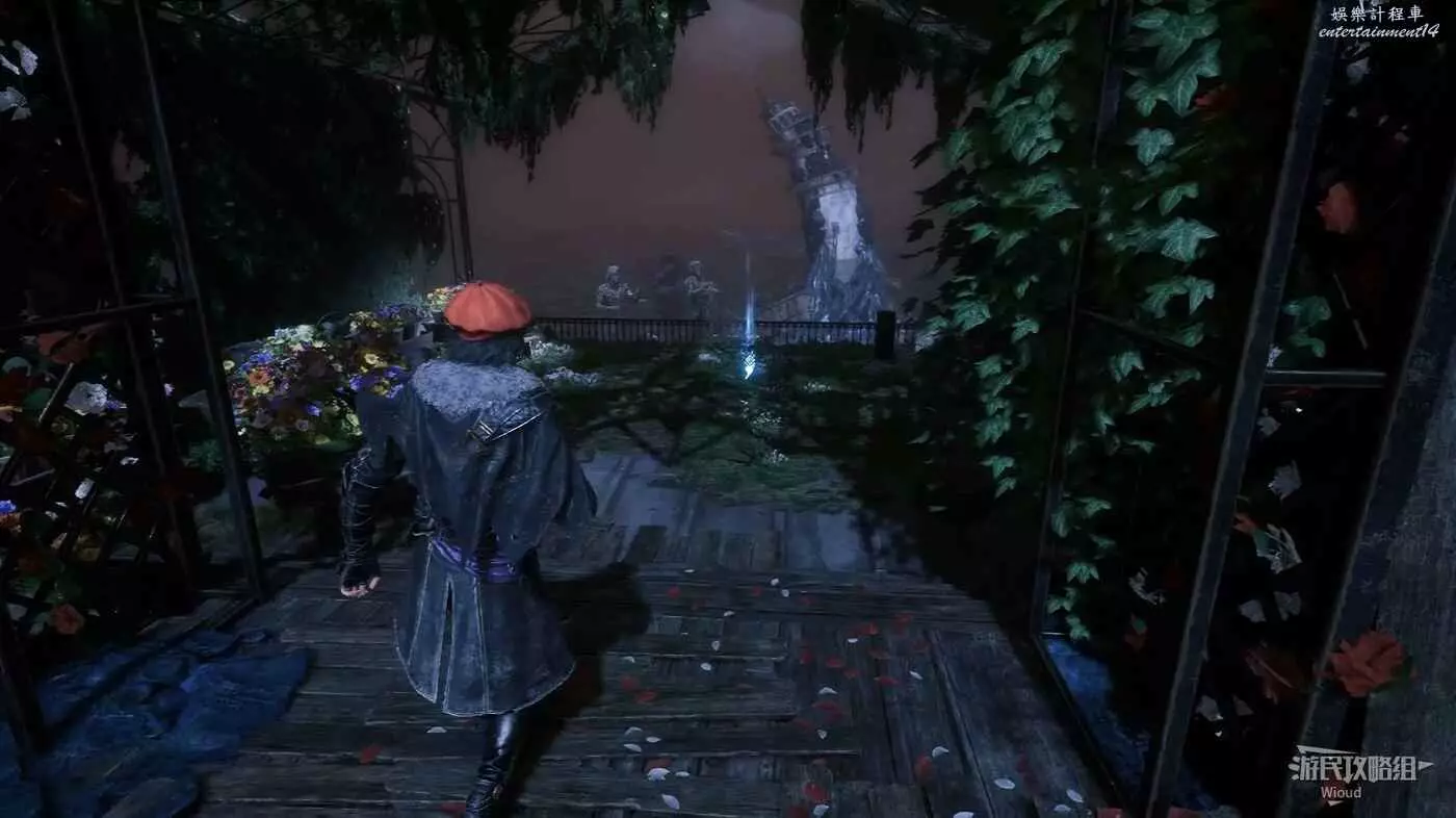 來到右側花園主路,往前走一段進入左側第一個過道,走到盡頭左拐貼著右牆可撿到一個【靈光色】。