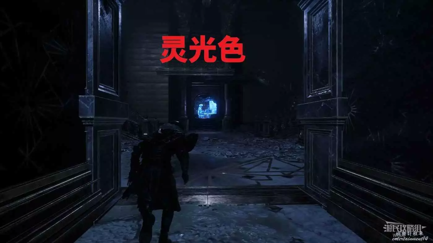 走不遠會看到一個帶著燈籠的敵人,拱門左側與怪物旁的平台都可以撿到一個【靈光色】。