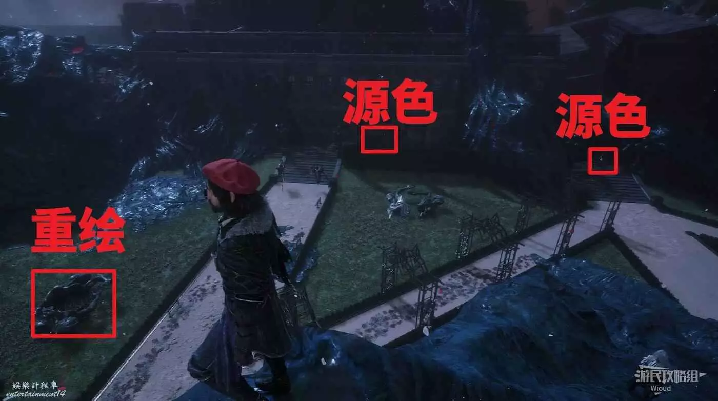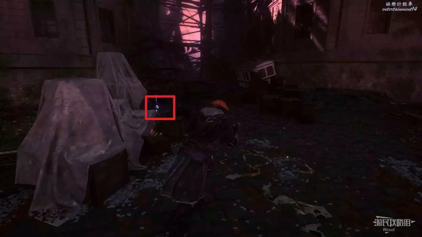 第三樓梯轉頭,通往主路的直路右側紅框所示位置可撿一個【重繪】。