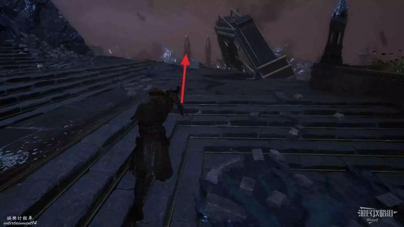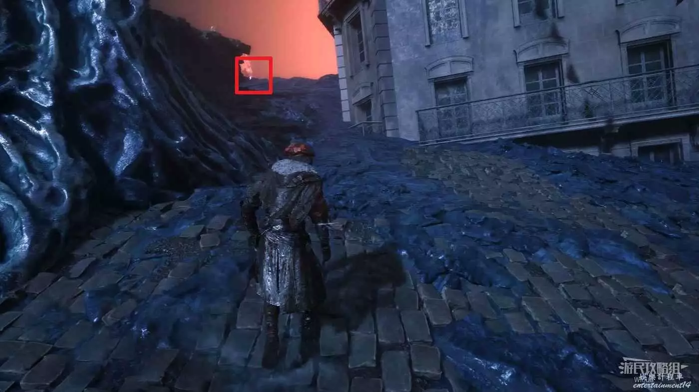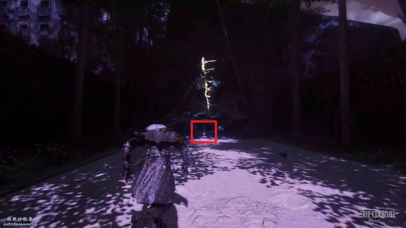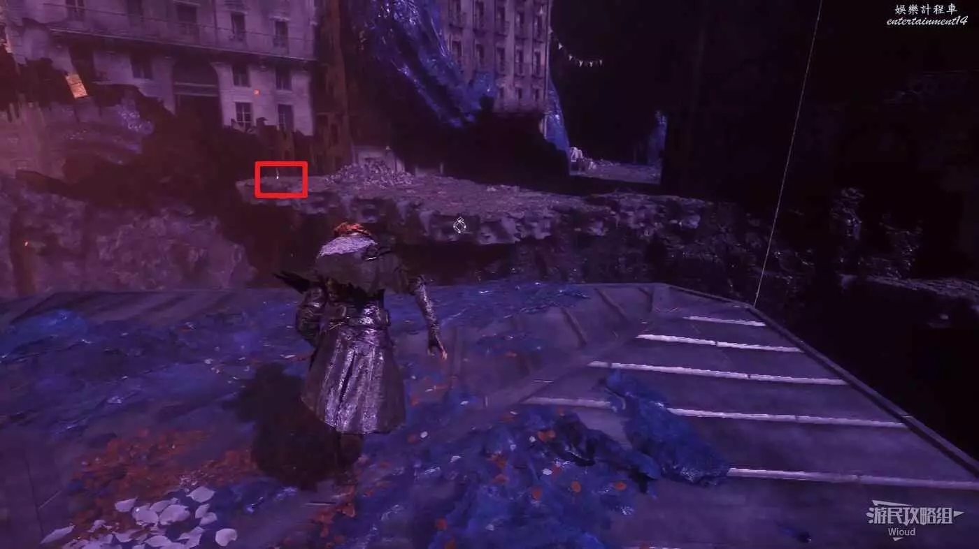 從精英怪後面的鉤爪跳到高處,上樓梯前左側可撿到一個【靈光色】。