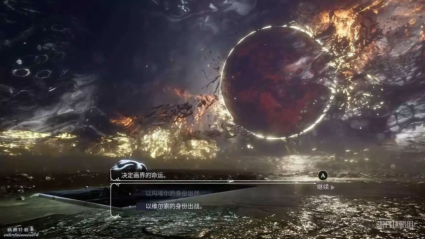 後續我們會被傳送到另一個空間裡,往前走觸發選項,【以瑪埃爾的身份出戰】或是【以維爾索的身份出戰】,不同選項對應不同結局,但只有劇情不同。