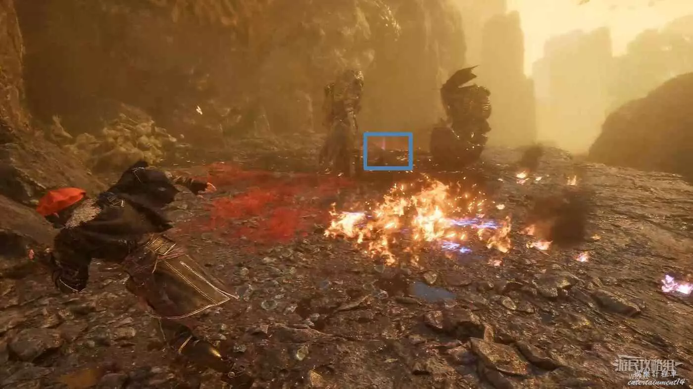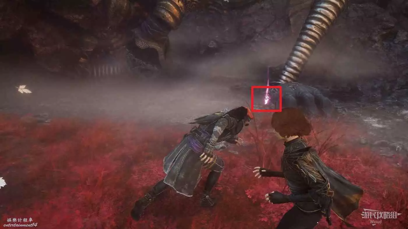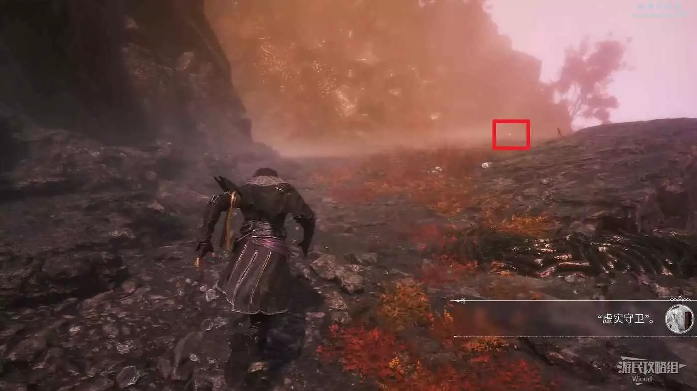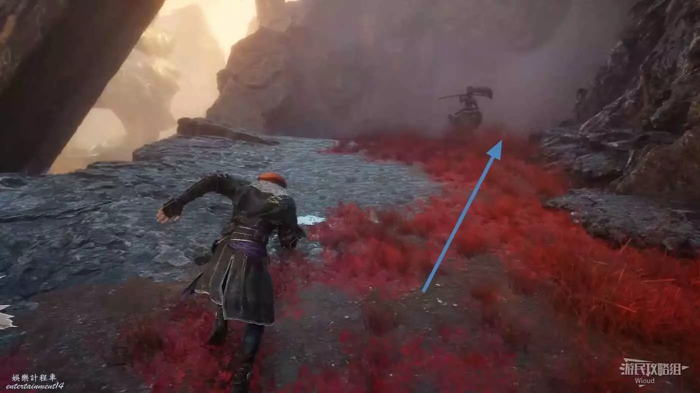 轉頭往回走,此時左側有個上坡,爬上去擊敗倆敵人,拾取中間道具點可獲得【複生亮聲碎片】。