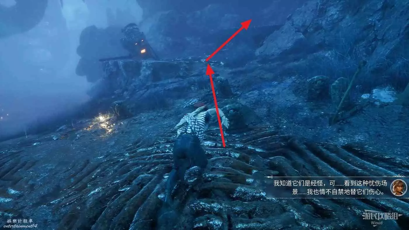 回到開闊地走正中間的大開口,路途中遇到一個灰飛煙滅的男人,對話到重複,一直走到打BOSS即可,中間沒有收集品。