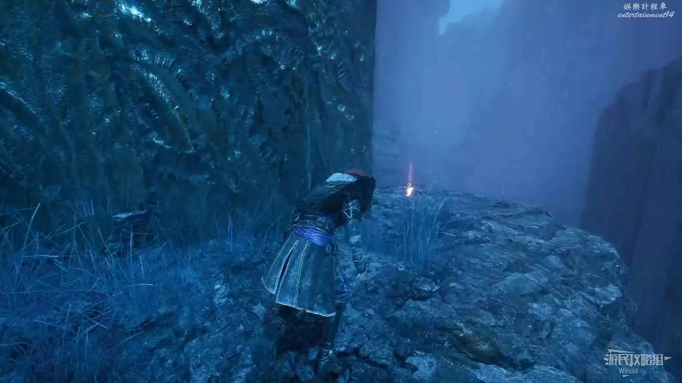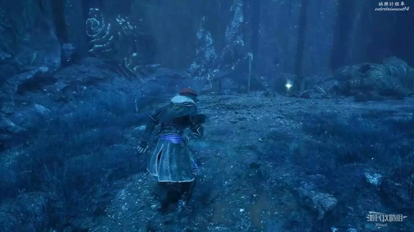 完事貼著右牆沿著上坡走,前方會有一個持盾敵人,將其擊敗後右拐可撿到符紋【無畏鬥士】。